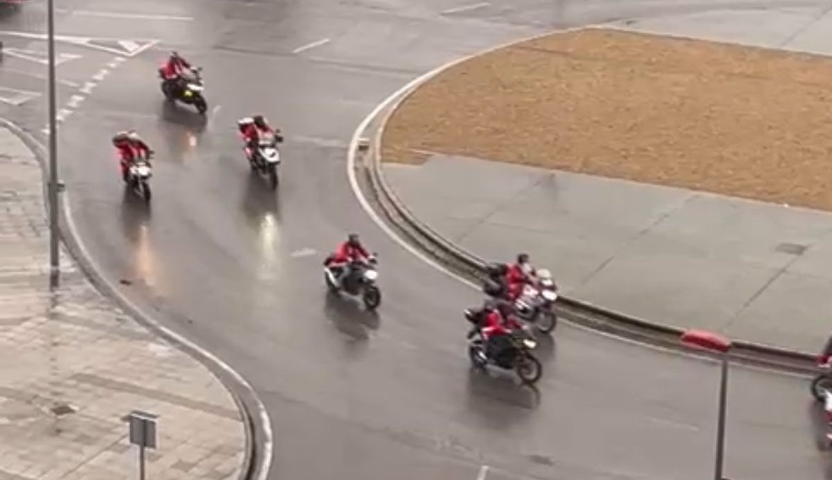 G.M. Tierras del Norte ha vuelto a organizar este sábado la tradicional 'papanoelada' que ha recorrido las calles de Ponferrada. Un centenar de moteros vestidos de Papá Noel han salido esta tarde a las 16 horas desde en Angie y llegarán hasta la sede de la Policía Local, donde entregarán regalos para la campaña solidaria del cuerpo.