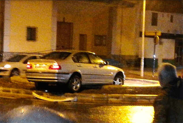 Un coche se empotró la pasada noche del sábado al domingo contra la rotonda de Cuatrovientos y acabó subido encima de ella. Un exceso de velocidad pudo ser la causa del incidente, aunque se desconocen más datos. El conductor salió ileso del accidente.