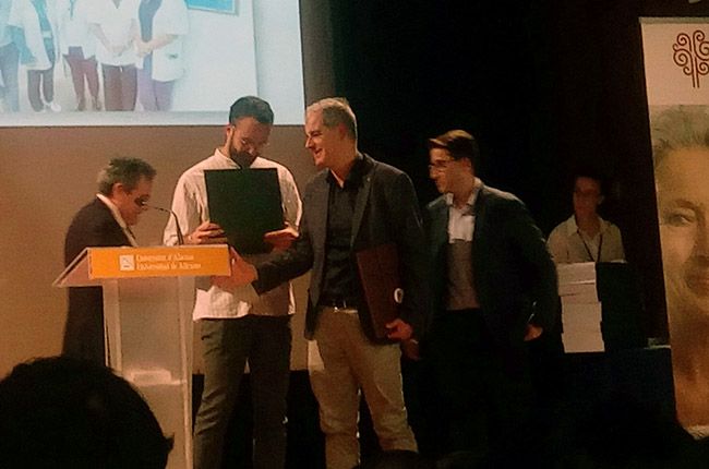 El acto de entrega de premios de la Cátedra de Enfermería se celebró el pasado viernes 29 en el Salón de actos de la Facultad de Educación de la Universidad de Alicante. El premiado estuvo acompañado de su tutor metodológigo, Manuel Mañá, que actualmente trabaja en Galicia.