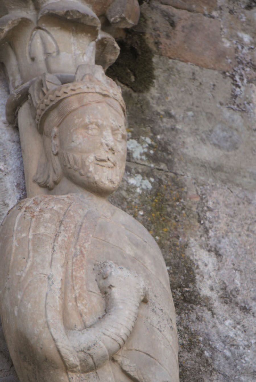 El artículo de los investigadores de la ULE parte de los orígenes del monasterio, lugar en el que se han conservado los vestigios que han sido objeto del estudio. “Las efigies, que representan a un monarca coronado y a un clérigo con mitra, parecen hacer referencia a dos de los patrocinadores del cenobio y ejemplifican la imagen de los poderes regio y eclesiástico que lo ampararon”.