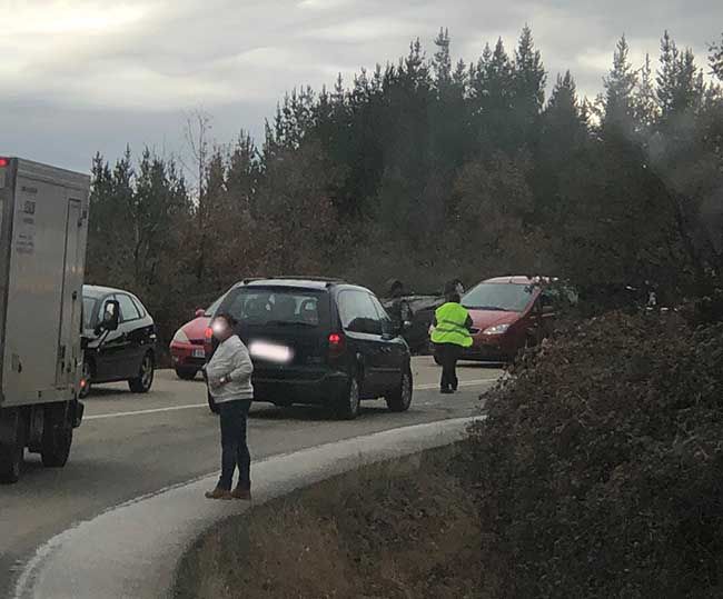 El vuelco del coche provocó retenciones en ambos sentidos de la carretera en Fabero hasta que la Guardia Civil de Tráfico restableció la normalidad en la circulación.