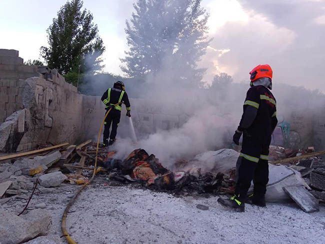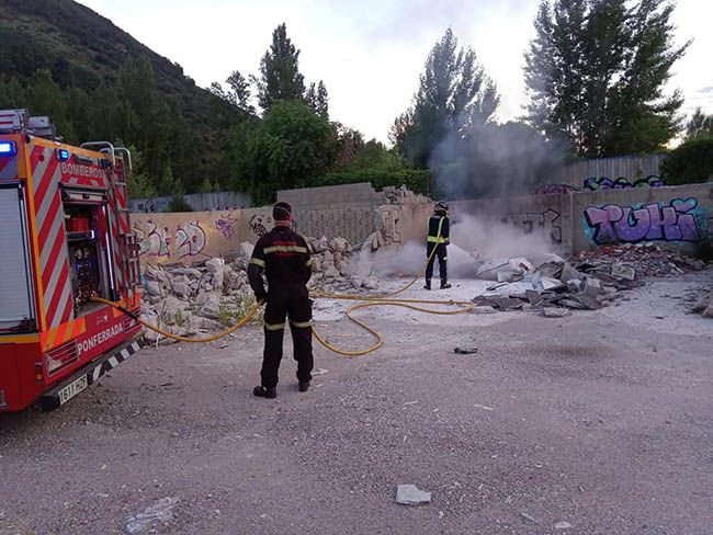Los bomberos de Ponferrada realizaron varias intervenciones este fin de semana. Una de ellas, la extinción de un incendio en las antiguas naves de Martínez Núñez en Flores del Sil. También tuvieron que eliminar un avispero en Fuentesnuevas, abrir una puerta bloqueada en una vivienda de Campo, retirar una cornisa de un inmueble de la zona alta de Ponferrada o la retirada de ramas rotas del entorno de Hogar 70 en Fuentenuesvas.