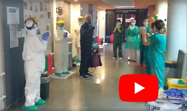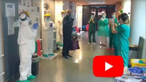 En este caso, el protagonista es un paciente que recibe el alta de la planta 3B y recibe una calurosa despedida por parte del personal sanitario, con aplausos y vítores incluidos. El ex paciente se muestra visiblemente emocionado, mientras atina a dar las gracias a todo los profesionales del centro berciano.