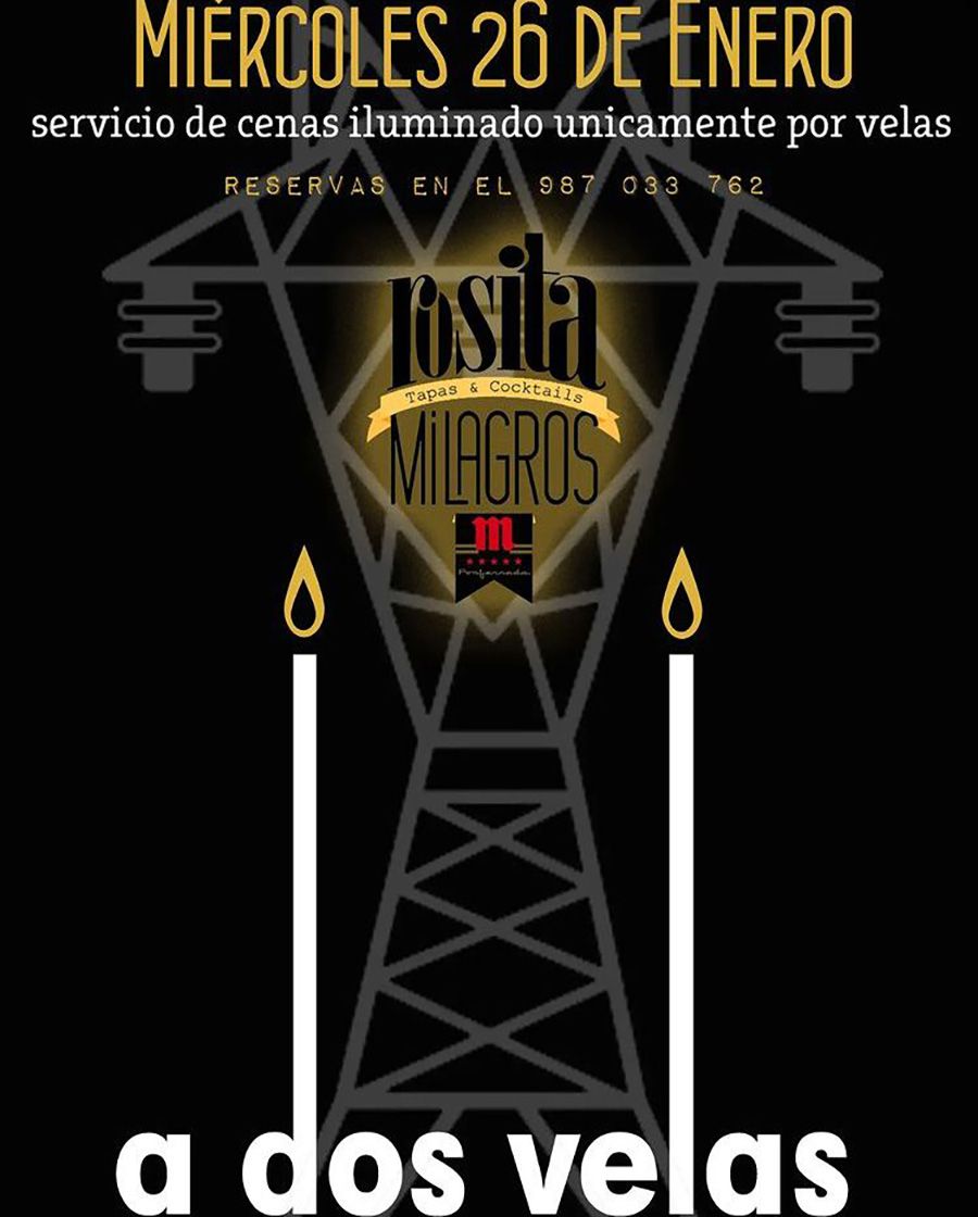 La luz de las velas del restaurante ponferradino Rosita Milagros, servirá como medio para reivindicar el aumento del coste de la luz y lo que supone. De este modo, este local gastronómico propone cenar "a dos velas" durante la noche del próximo 26 de enero, día en el que "el servicio de cenas " será "iluminado únicamente por velas". Así, desde este establecimiento afirman en su cuenta de Instagram que "es seguro que por cada habitante de este país, hay una forma distinta de ver algunos de los problemas a los que nos enfrentamos, pero sin embargo hay otros problemas en los que todo el mundo coincide. Este es el caso de la factura de la luz, medida que nadie secunda" añadiendo que "con esta cena nos gustaría dar más visibilidad a este problema que es de todos y que entendemos que no se puede seguir dejando pasar sin hacer nada".