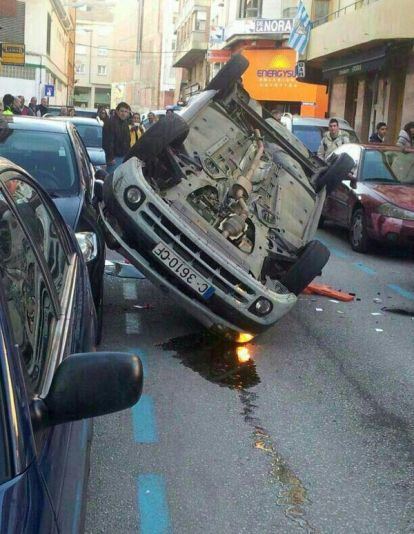 El accidente ocurría esta tarde, en la calle Isidro Rueda. Según los testigos, el coche se desplazaba a gran velocidad e impactó con otros aparcados hasta volcar.