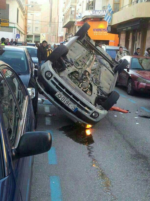 El accidente ocurría esta tarde, en la calle Isidro Rueda. Según los testigos, el coche se desplazaba a gran velocidad e impactó con otros aparcados hasta volcar.