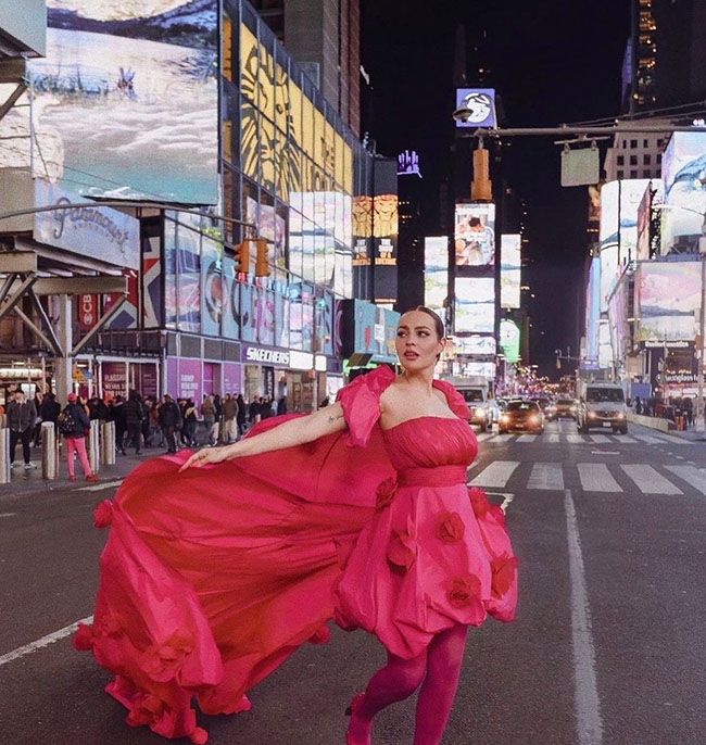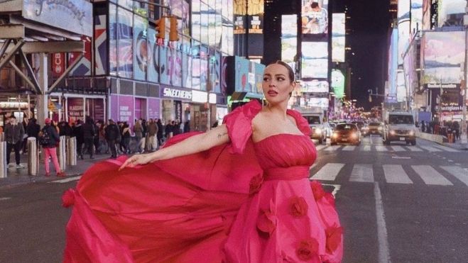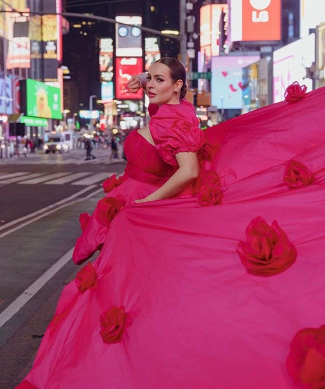 "Un honor brillar a tu lado en New York @luceral. Es un sueño ver un diseño nuestro en el corazón de la ciudad", afirma Silvia Fernández Atelier en sus redes sociales.
