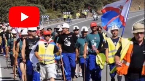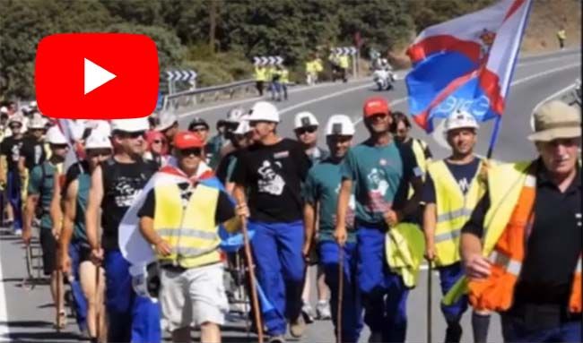 Las notas del himno minero, el 'Santa Bárbara Bendita', marcan el inicio con imágenes de pasadas manifestaciones y marchas mineras, para dar paso a mensajes de ánimo de todos los vecinos.