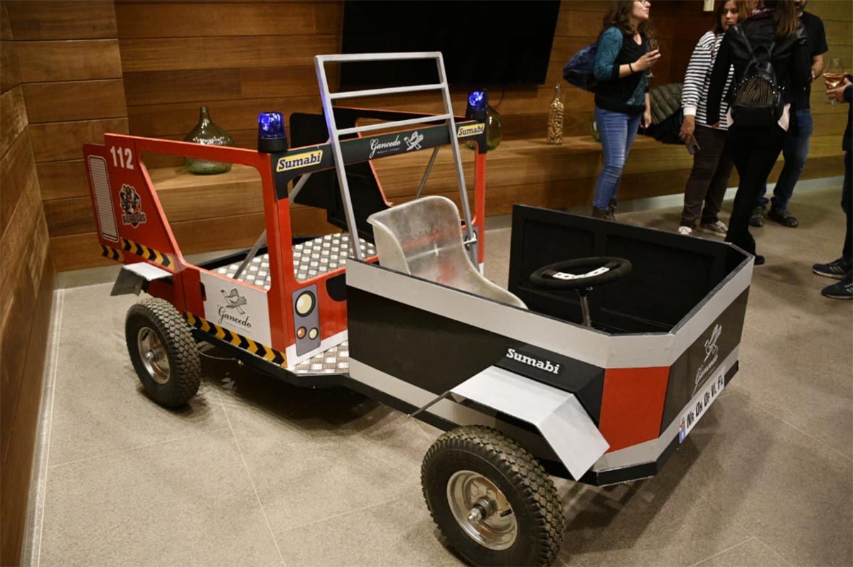 "La iniciativa surgió un poco por azar. Hemos visto vídeos relacionados de carreras de años anteriores. Y uno de los compañeros me lo descubrió a mi, me propuso tirar para adelante y apuntarnos, y así lo hicimos. A partir de ahí comenzó una serie de 'bacalao' para realizar toda la organización del evento, todo lo que lleva el montaje y el diseño de la carrilana", apunta Daniel Fernández, añadiendo que "lo que hemos hecho durante estos dos últimos meses es trabajar durante muchas horas para conseguir el diseño de esta estrambótica autoescala de bomberos. Estamos contentos con el resultado". Además, Fernández ha aprovechado la presentación de su carrilana para dar las gracias a Bodegas Gancedo y demás patrocinadores, que "sin su apoyo hubiera sido imposible".