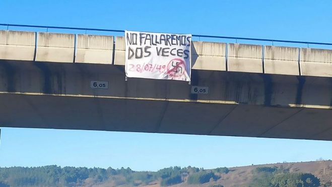 Las redes sociales han vuelto a ser el epicentro de la viralidad en El Bierzo. En este caso, la 'protagonista' ha sido una pancarta ubicada en el puente de la A-6 en Bembibre, concretamente en el puente que conecta el Polígono Industrial con la capital del Bierzo Alto. "No fallaremos dos veces. 28/7/49" es lo que indican los autores en el cartel, que viene acompañado por una esvástica tachada. Sin embargo, esta pancarta se convirtió en viral cuando una cuenta de Twitter utilizó una foto del cartel para dar la "bienvenida a Santiago Abascal", ya que este miércoles el líder VOX estará en la Plaza del Ayuntamiento de Ponferrada. Aunque la historia del cartel va más allá. Los autores con esta fecha hicieron referencia a un capítulo de la historia que se produjo en El Bierzo a finales de julio de 1949.
