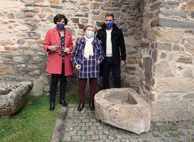 La concejala de Cultura y Turismo  de Ponferrada, Concepción Vega, junto al edil de Medio Rural, Iván Alonso, han presentado durante la mañana de este viernes la recuperación de una pila bautismal de la antigua ermita del Sacramento de 400 años, localizada por la berciana, Analista Ruiz.
