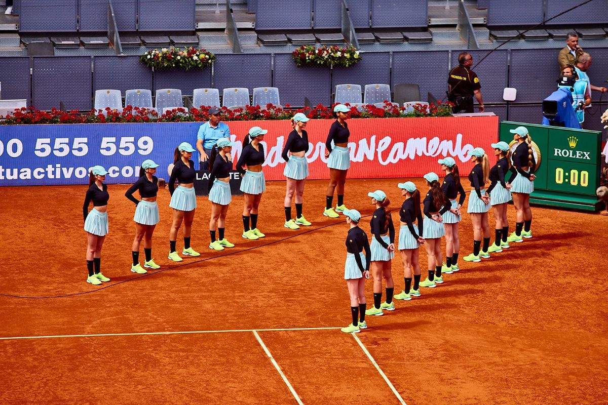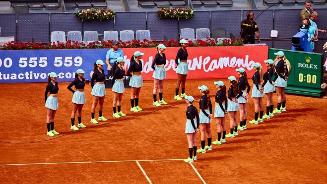 González recuerda que se está en una competición de tenis donde los niños recogepelotas llevan pantalón y camiseta, igual que los adultos recogepelotas; mientras que las niñas recogepelotas llevan falda plisada y camiseta. Algo que se reproduce en este caso, porque ellas vestían con una falda plisada con malla y top deportivo.