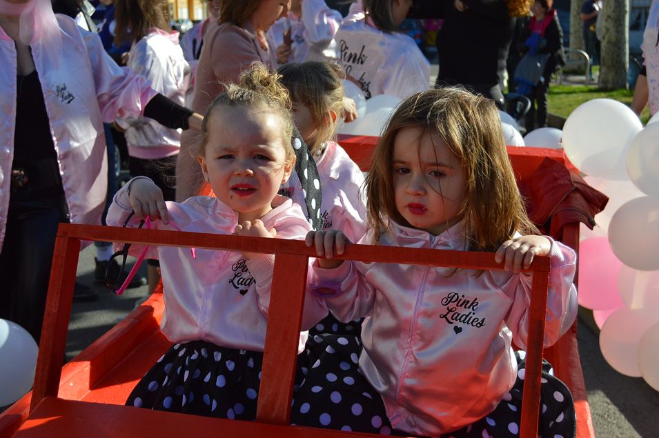 Los bailes de un grupo de matrioskas y de otras animadas muñecas, junto a las plumas de 'Pavoneando la cometa' y las que se preguntan '¿Y el anillo pa'cuando?' mostraron sus originales disfraces con un animado grupo lleno de las 'pink ladies' de todas las edades y tamaños, alguna Sandy Dee y también algún que otro Dennis Suco de 'Grease'. También cinéfilo, el disfraz de una pareja con el padre Karras y Regan (en la cama) de 'El exorcista'.