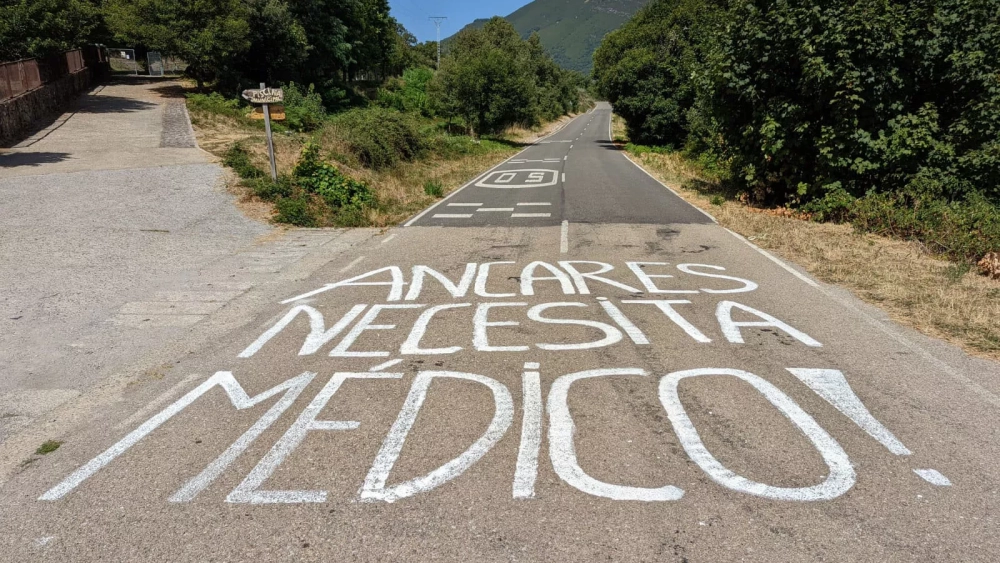 Los vecinos han escrito en la carretera el mensaje "Ancares necesita médico" en la carretera, para aprovechar la atención creada por el paso de La Vuelta Ciclista. De esta manera, pretenden llamar la atención sobre la situación que asola el municipio desde hace varios meses.