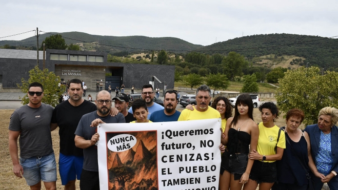 “Nos sentimos un poco mal porque nosotros pensamos que iban a visitar el pueblo y nos sentimos un poco abandonados. Está bien que vengan, pero han ardido casas. Las Médulas también es un pueblo, no solo los picachos y el patrimonio. Hay vecinos, hay negocios y nos hemos sentido muy solos”, indicó Mónica Pérez en nombre de todos los vecinos.