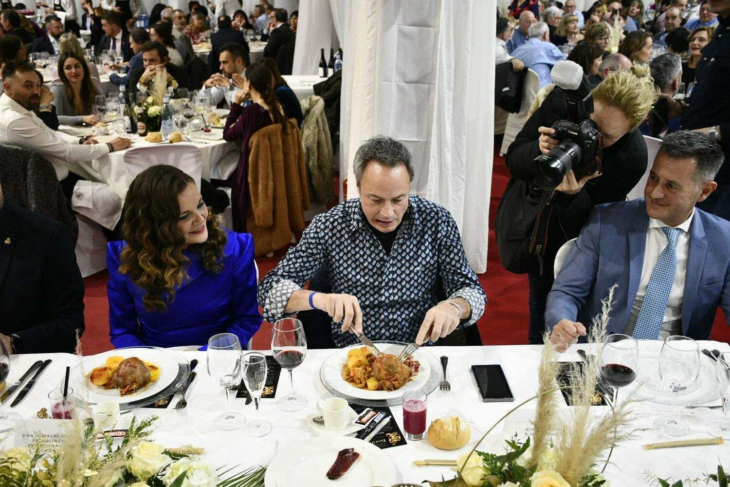 Sergio Torres, sin su hermano, ha estampado su firma en el libro de honor de Bembibre durante el acto de recepción de autoridades del 50 Festival del Botillo de Bembibre. Finalmente, no serán los Hermanos Torres los mantenedores del acto, sino que será solo Sergio. "Javier se ha quedado en el último minuto", se lamentaba el cocinero, que prometía volver a la capital del Bierzo Alto con su hermano y bromeaba sobre que "había venido el mejor de los dos", es decir, él.