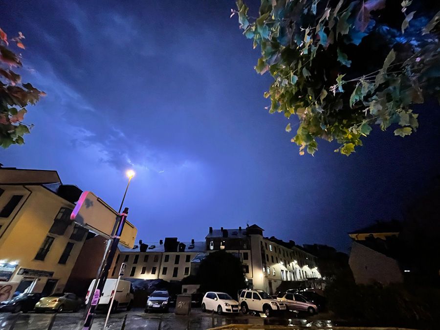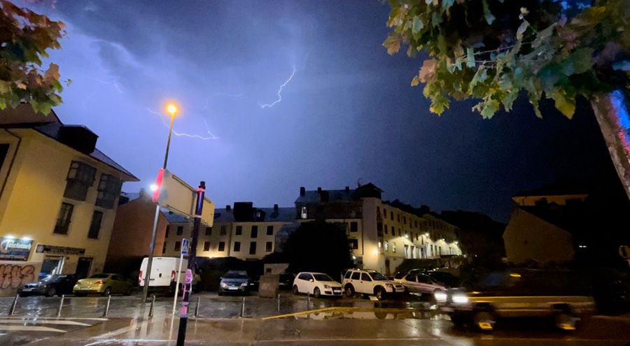 La tormenta explosiva de la noche del domingo iluminó el cielo del Bierzo después de una calurosa jornada. De hecho, la Agencia Estatal de Meteorología (Aemet) amplía el aviso amarillo por el elevado riesgo de que se produzcan tormentas y granizadas en la Comarca hasta el martes.