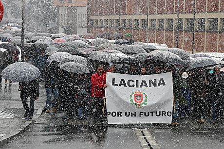 Posteriormente se ha descubierto una pequeña escultura junto al Ayuntamiento de Villablino con forma de una tradicional lámpara de la mina, antes de que las decenas de participantes en estos actos hayan emprendido a pie una marcha hasta el pozo Calderón, uno de los puntos más significativos que tuvo esta reivindicación. La curiosidad es que el trayecto se ha recorrido bajo el manto blanco de la intensa nevada que ha caído en la capital lacianiega durante toda la mañana, una circunstancia meteorológica que ha ido ganando protagonismo y que ha teñido de blanco a los participantes en su caminar.