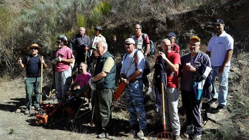 Un grupo de 16 voluntarios de Promonumenta, la asociación de amigos del patrimonio cultural de León, junto a responsables de la junta vecinal de la localidad ponferradina de Valdefrancos llevaron a cabo este fin de semana el acondicionamiento y desbroce del entorno de las tres antiguas minas de hierro hoy abandonadas existentes en la zona conocida como el valle de Rioseco. Es la cuarta hacendera que el colectivo impulsa en el área del valle del Oza, corazón de la Tebaida berciana.