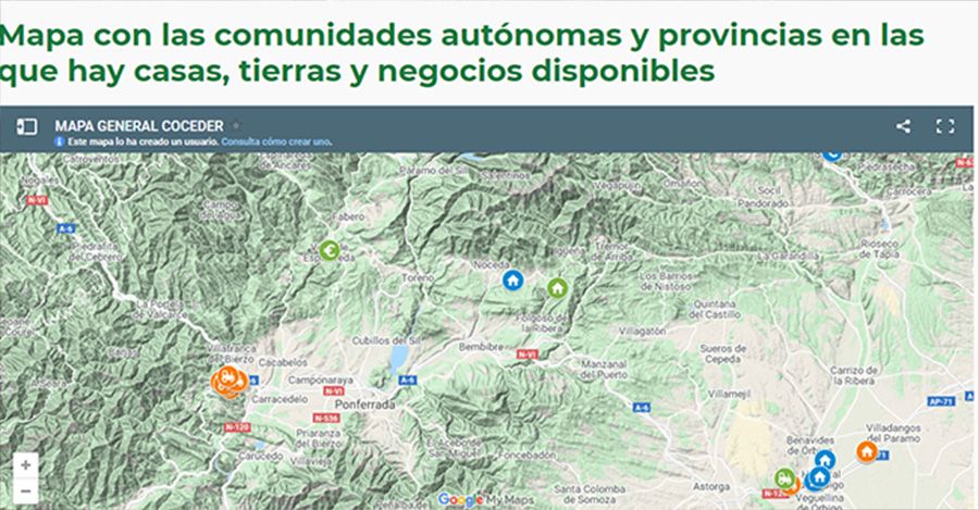 Así, el banco de casas, tierras y negocios que ofrece la plataforma de "Volver al Pueblo" aún no se encuentra disponible en todas las zonas del mapa rural español. Sin embargo, la tierra berciana de la comarca de El Bierzo sí se encuentra dentro de la oferta de la iniciativa. De esta modo, la manera para acceder a las ofertas que se encuentran activas en El Bierzo es muy simple: acceder a la página web de la plataforma www.volveralpueblo.org, entrar en la sección de "Banco de casas, tierras y negocios" y buscar en el mapa la comarca berciana. Una vez localizada la zona de El Bierzo, el usuario podrá observar a través de los iconos las diferentes ofertas de negocios, casas y tierras.
