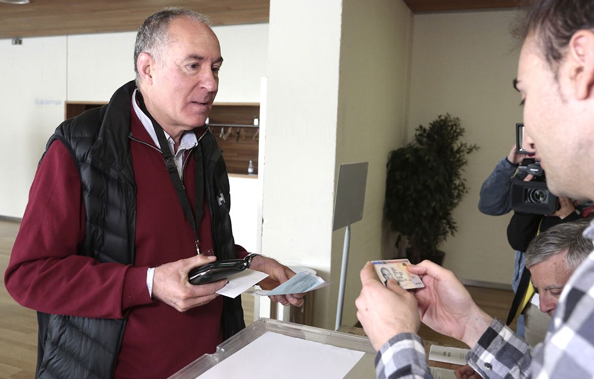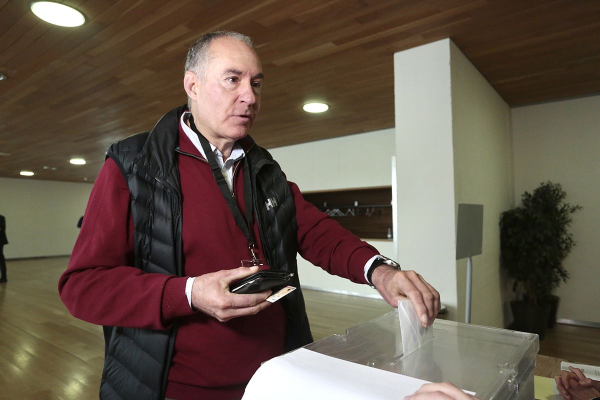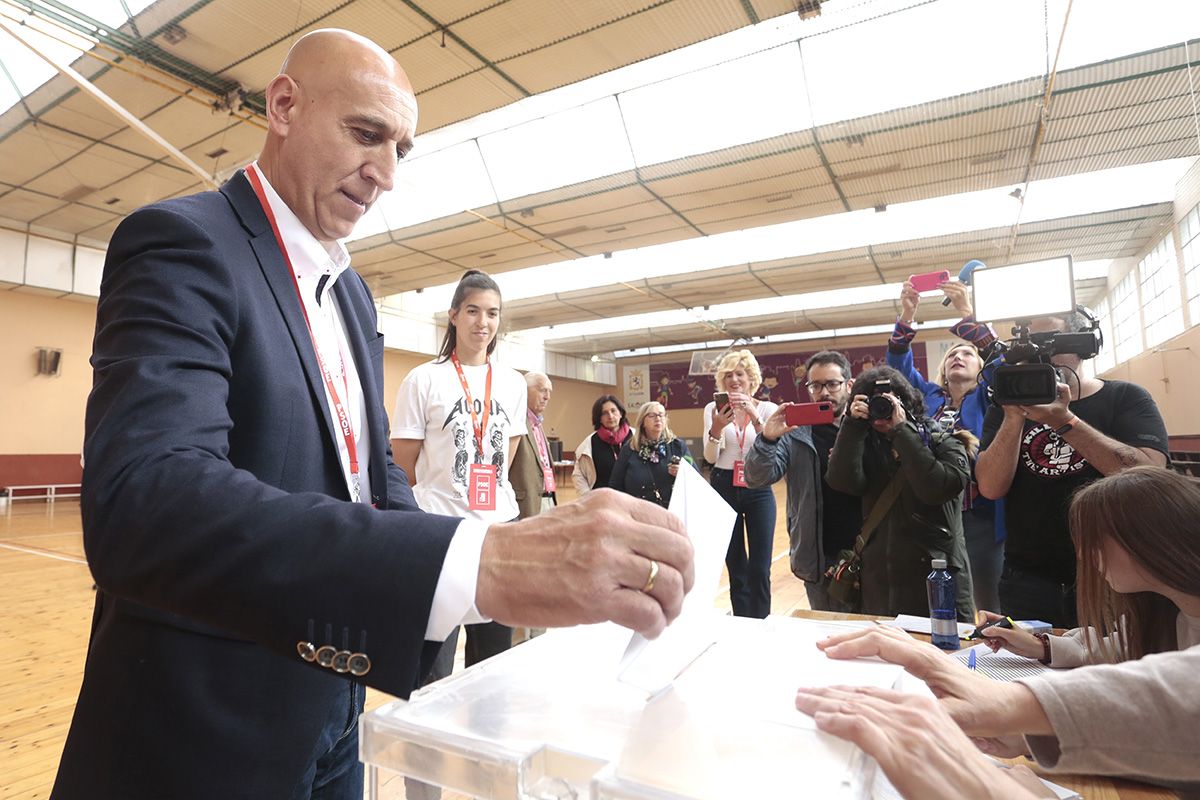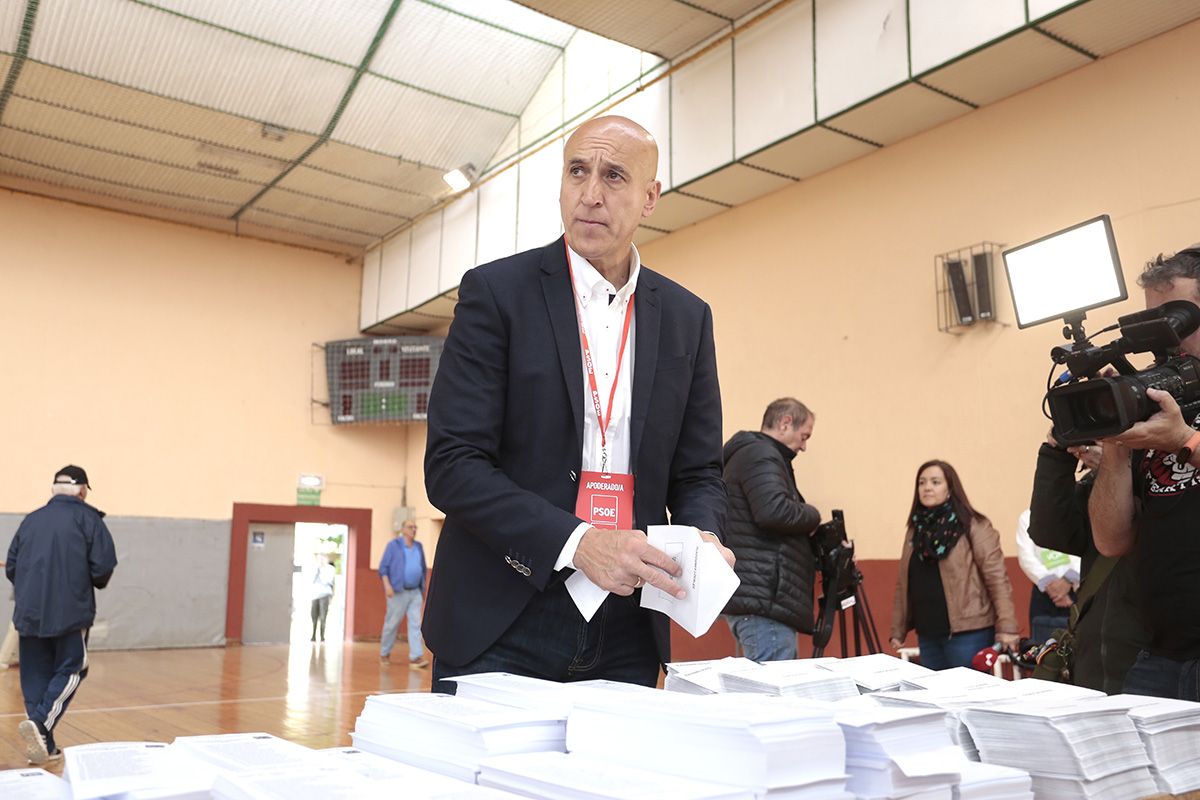 El alcalde y candidato a la reelección del PSOE, José Antonio Diez, ejerce su derecho al voto en el Pabellón del CHF
