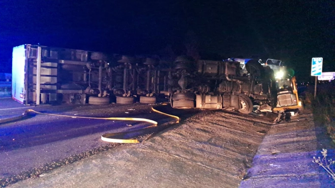 A las 21:41h del miércoles 23 el servicio de emergencias del 112 de Castilla y León recibe un aviso por un accidente en el que un camión ha volcado y el conductor se encuentra atrapado en el interior en la A6 km 421 sentido Madrid, en el término municipal de Vega de Valcarcel.