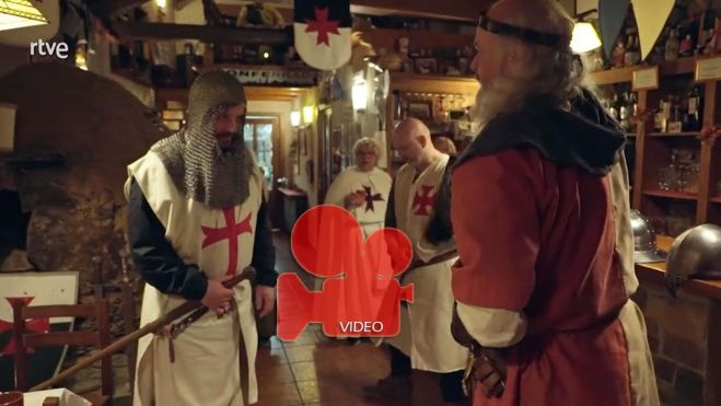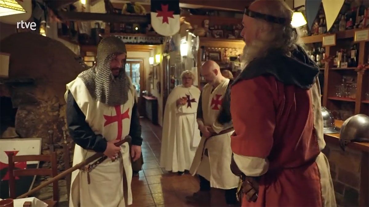 Y ya como broche final del viaje, y también del programa, Touriñán y Hazas encontraron una taberna templaria en Espinoso de Compludo, donde Xosé 'cumplió su sueño' y fue 'investido' caballero templario... En realidad no, pero se caracterizó como tal e hicieron pasar un muy agradable rato a la audiencia que pudo ver las entrañas de la Comarca del Bierzo.
