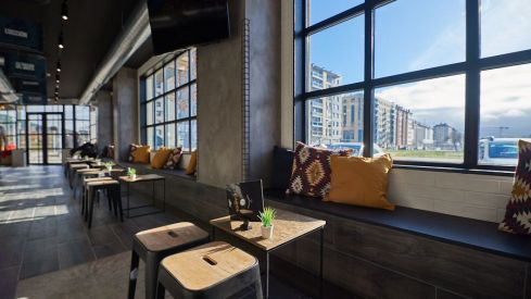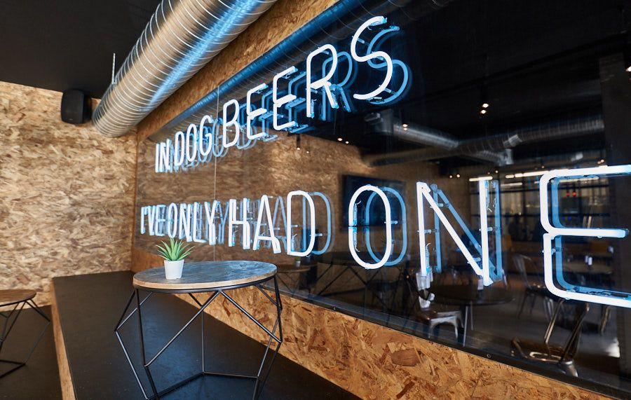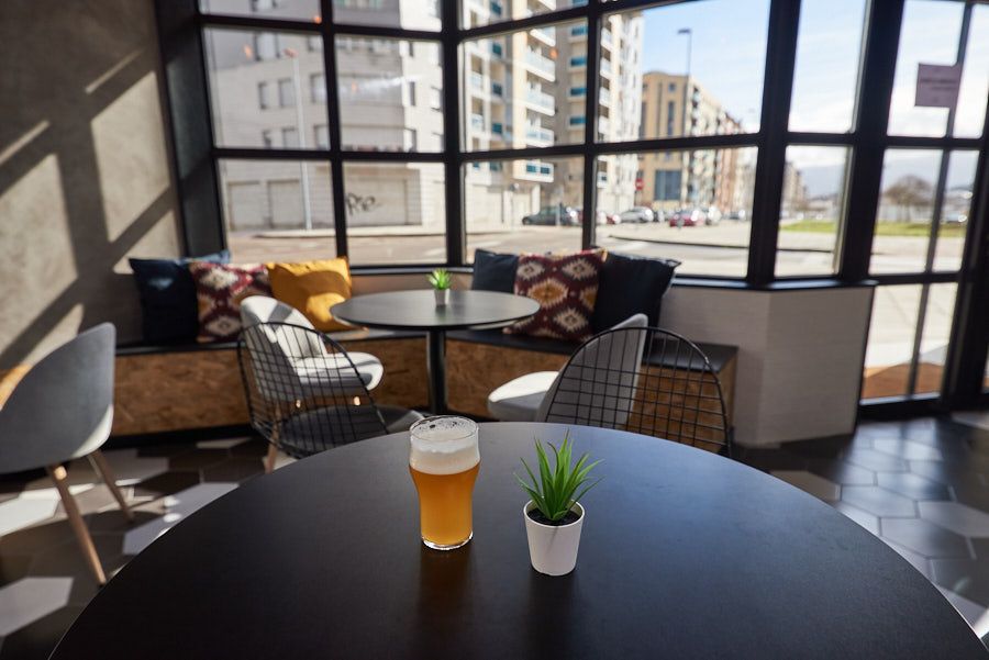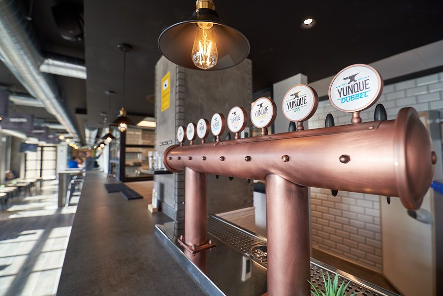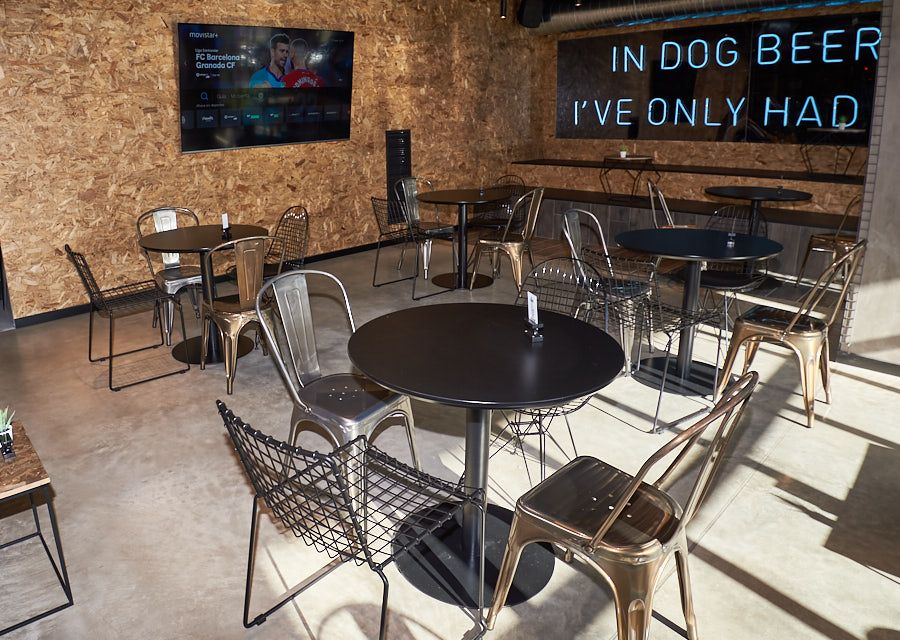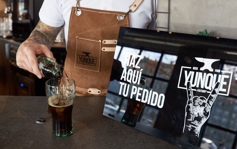 A lo largo de la extensa barra se extiende la zona de cañas y tapas, decorado con un estilo más industrial, fiel a la filosofía de la marca, con distintos tipos de mesas entre los que elegir, en función de lo que más te apetezca. Además de la cerveza artesana de 'Yunque', habrá vinos de excelente calidad, refrescos, combinados y copas. De hecho, en el techo encontrarás carteles que explican el proceso de creación de la cerveza de la casa.