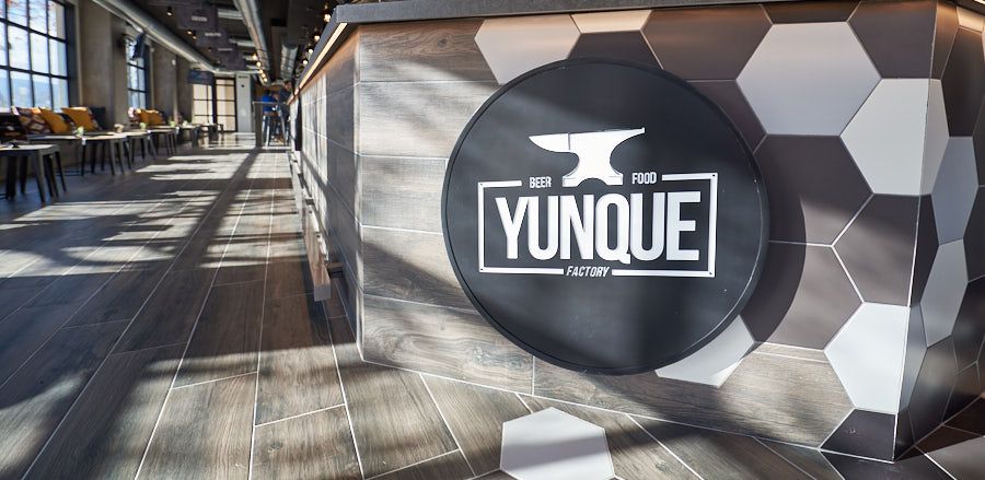 La ubicación responde a las necesidades del proyecto, un local amplio y espacioso, con mucho aparcamiento disponible. El horario inicial será de 12:00 a 00:00 horas, aunque los fines de semana se alargará adaptándose a la necesidad y afluencia de los clientes. El local de 'Yunque' propiamente dicho se divide en tres partes, a las que habría que añadir una cuarta, la fábrica. Otro elemento original del local es que cada uno de los tres espacios contará con un ambiente único, con proyecciones diferentes en las pantallas y cada uno con su propia música, acorde con cada momento.