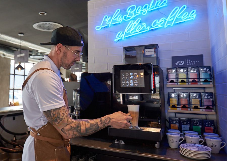 En primer lugar, se encuentra la zona de "coffee", un espacio más acogedor, decorado de un modo que invita a alargar el momento del café, a desconectar y disfrutar del momento, perdiendo la mirada en las vistas que ofrece la cristalera. Un secreto confesable de 'Yunque' es su máquina de café automática, que permite ofrecer la misma calidad de café siempre. El mismo gramaje, la misma densidad de la espuma... el café que tomes siempre será el café de 'Yunque', no dependerá del factor humano, por lo que promete ser siempre delicioso, independientemente de cuándo te lo tomes.