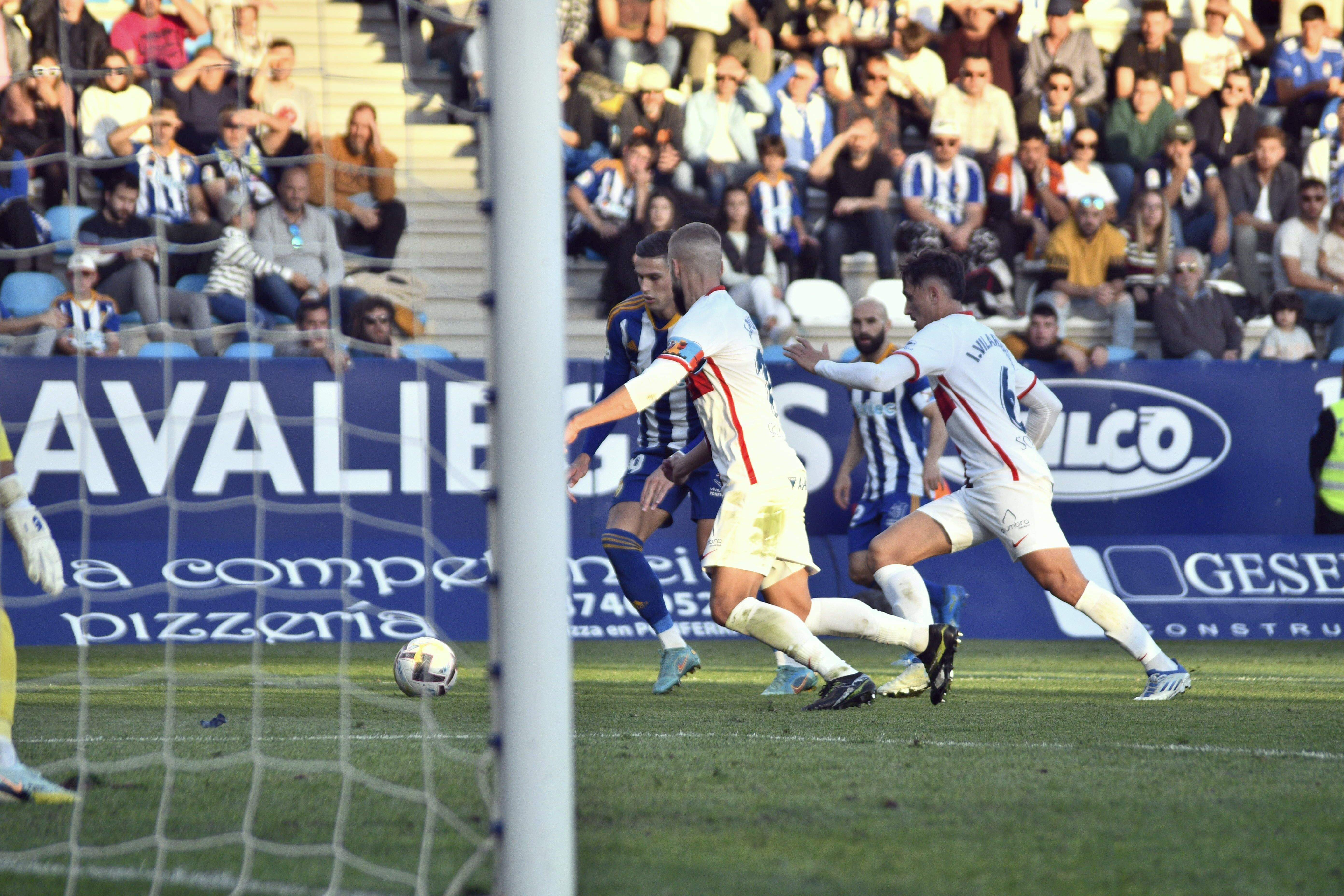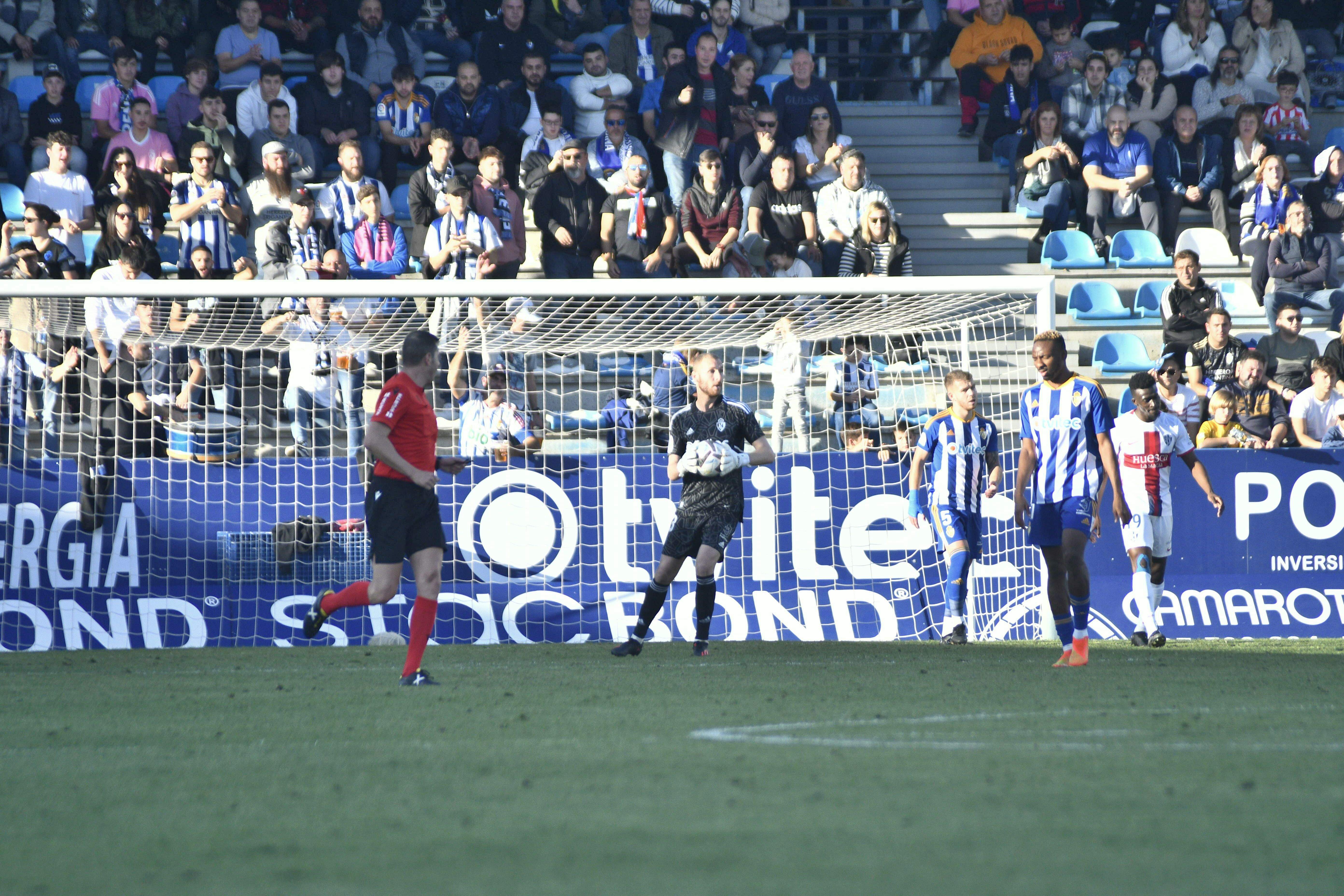 Tuvo muchas opciones de igualar el conjunto aragonés en el ecuador del segundo tiempo con un remate de Carrillo que salvó Makaridze y el posterior golpeo de Soko que sacó Pascanu con muchas dificultades. También estuvo providencial el meta georgiano para salvar un intento de gol olímpico de Mateu. Lo intentó de todas las maneras posibles el equipo aragonés, pero se encontró con un portero imbatible, un santo en el Día de Todos los Santos.