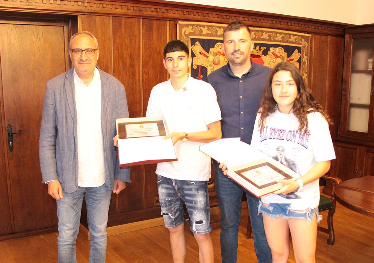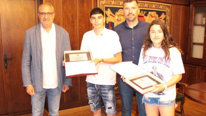La ciudad de Ponferrada sigue orgullosa por los premios obtenidos por sus vecinos. Tanto es así, que el alcalde de Ponferrada, Olegario Ramón, junto con el concejal de Deportes, Iván Castrillo, hicieron entrega este miércoles de dos placas a dos jóvenes deportistas de la especialidad de Muay Thai. Se trata de Zulema Vázquez Espín, que se ha proclamado campeona de España en la categoría cadete (14-16 años) y en el peso de 54 kilogramos; y de Aymar Arias Domínguez, cuádruple campeón de España en 55 kilos en los años 2017, 2018, 2020 y 2022.
