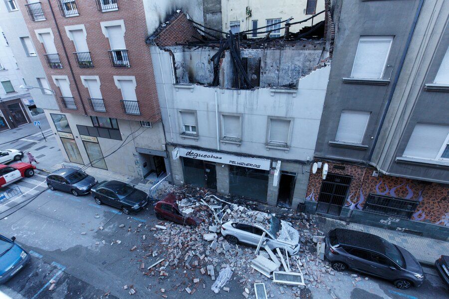 Aunque finalmente no hubo que lamentar daños personales, el incidente también dejó en estado de siniestro total dos vehículos estacionados frente al inmueble, que resultaron afectados por la caída de cascotes. Otros dos coches resultaron afectados con daños leves por el mismo motivo. Hasta el lugar de los hechos acudieron cinco efectivos de los Bomberos, con una autobomba y el camión autoescala.