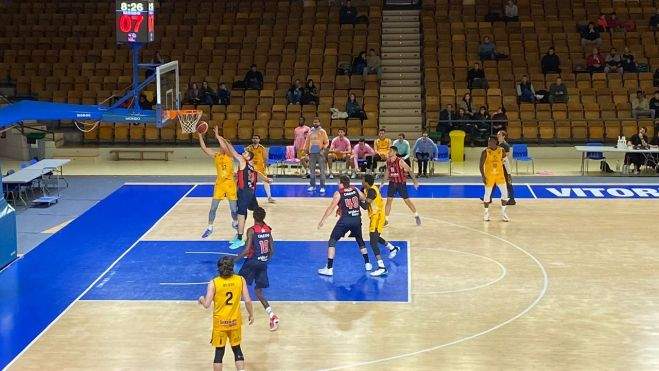 Sí respondió con más fuerza el conjunto vitoriano en la continuación y comprimió el marcador con un triple inicial de Portalez. Sin embargo, apenas consiguieron amenazar el cómodo resultado de los bercianos, muy favorecidos por una antideportiva de Macura que los de David Barrio aprovecharon para quebrar la barrera psicológica de la decena (23-34). No pudieron reducir la diferencia (35-46) los locales al descanso.