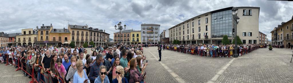 El rey Felipe VI preside el acto de clausura del XXV aniversario del Campus de Ponferrada de la ULELa Plaza del Ayuntamiento de Ponferrada esperaba impaciente a la llegada del Rey Felipe VI, que vista la casa consistorial de la capital berciana después de su recorrido por el Campus de la ciudad (VER NOTICIA). Entre los vecinos de la Comarca que se han acercado hasta la Plaza está el alcalde de Villamartín del Sil, que se ha mostrado especialmente ilusionado por la llegada del monarca. Aproximadamente han sido más de 2.500 personas, tal y como constatan desde la Policía Nacional, en un primer momento se habrían contabilizado las 2.500, aunque más tarde la cifra ha aumentado y, por tanto, hasta el momento, no existe una cifra oficial.