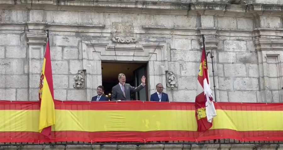 El rey Felipe VI preside el acto de clausura del XXV aniversario del Campus de Ponferrada de la ULEDespués se ha asomado al balcón del Ayuntamiento para saludar a los vecinos que se habían acercado hasta la plaza consistoria. Sin embargo, un momento icónico ha ocurrido instantes antes de que el monarca subiera a al coche oficial, cuando la Panadería Liébana, anexa a la Casa Consistorial de Ponferrada, ha hecho entrega de sus productos al rey Felipe VI, como homenaje.