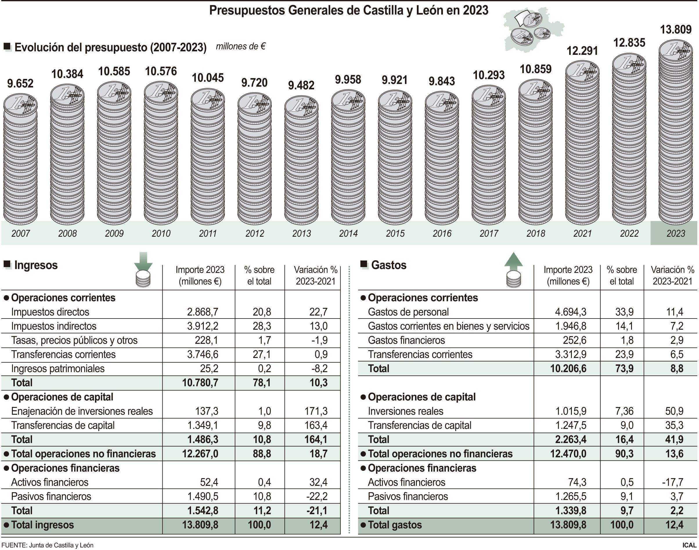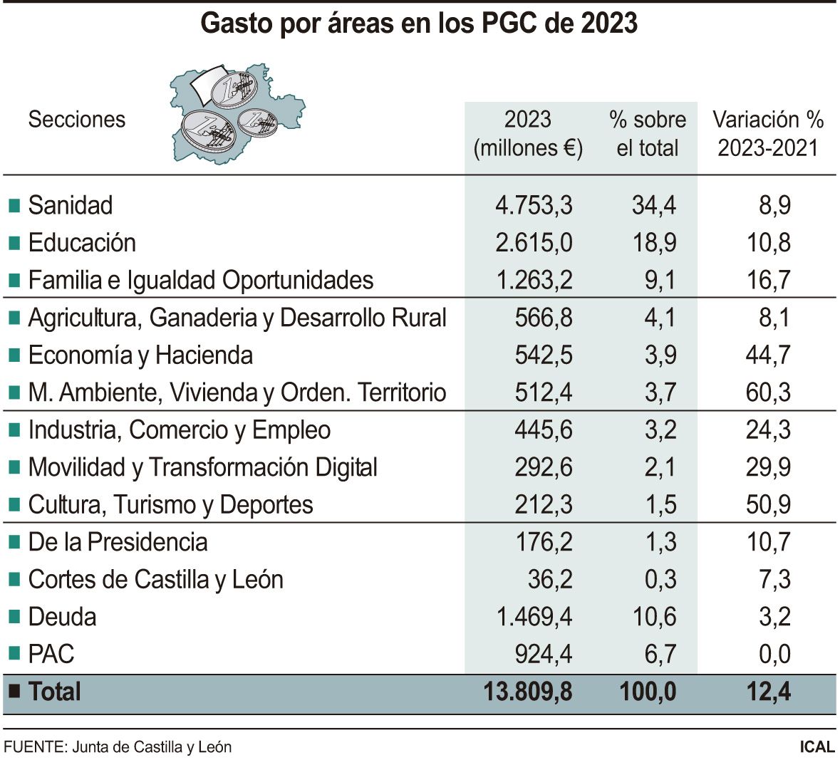 La Junta dispondrá el año que viene de los presupuestos con mayor dotación de su historia, con 13.809 millones, que representan un aumento de un 12,35% en relación con los últimos aprobados, los de 2021.