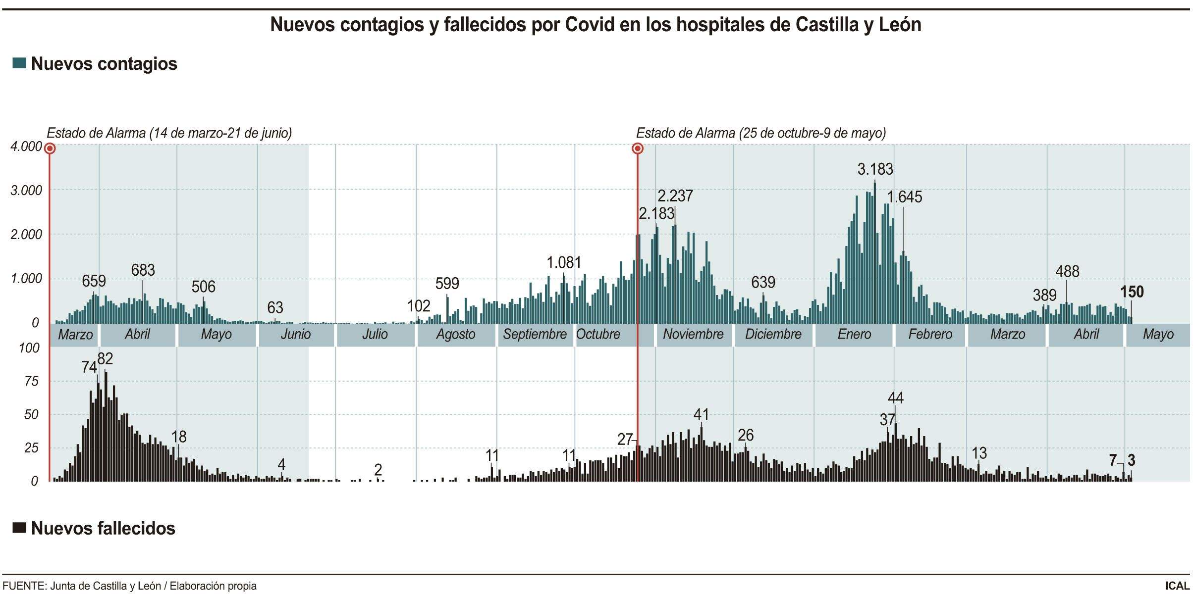 En cuanto a los fallecidos, en total, y hasta este domingo, perdieron la vida en hospitales por el virus 5.701 personas. Así se contabilizó una muerte más en Valladolid, por lo que la cifra sube a 1.156; Burgos, hasta un total de 702, y León, hasta un total de 1.147. En el resto se mantuvieron sin cambios: Ávila (339), Palencia (444), Salamanca (835), Segovia (366), Soria (285) y Zamora (427).