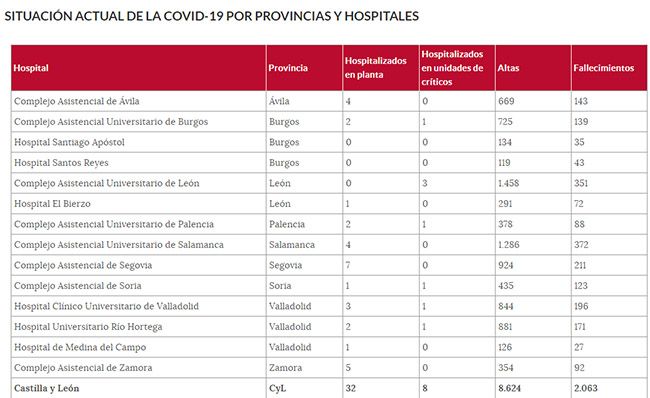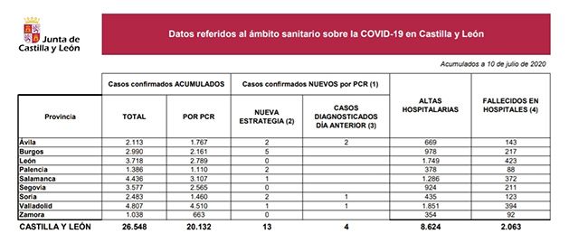 *Nota: Desde el pasado 19 de junio, la Junta informa de los datos de COVID-10 en Castilla y León una vez a la semana.