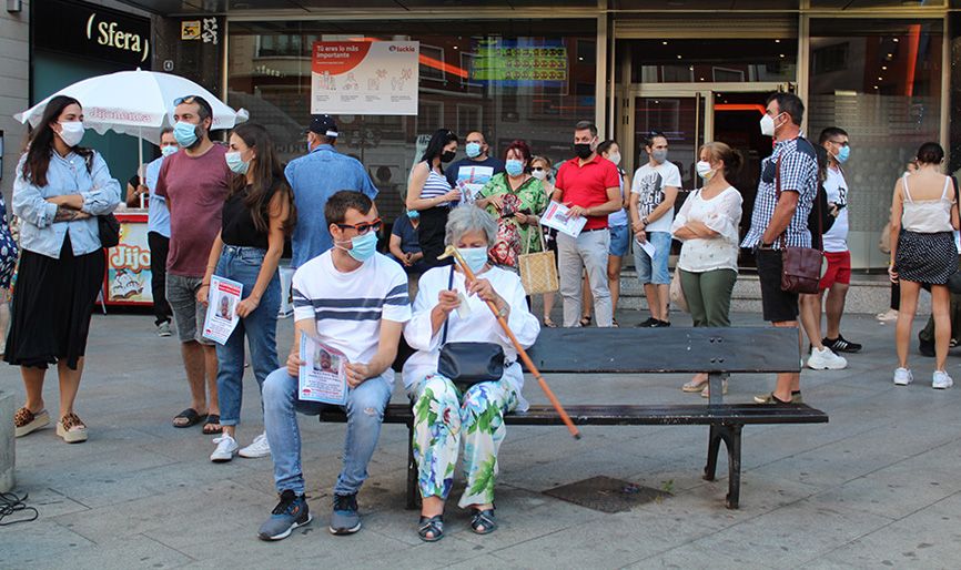 La tia del desaparecido, Carmen de la Puente (D), durante la concentración en LazúrteguiDecenas de bercianos han sumado su apoyo este martes a la concentración en Ponferrada en recuerdo de Yago de la Puente, el gallego desaparecido hace justo un año en Ortigueira. La tía de Yago, Carmen de la Puente, ha hablado en nombre de todos los familiares y amigos allí reunidos, para pedir al resto de la población que no se olviden de su sobrino. "Que sigan compartiendo la foto, que si alguien le ve o sabe de él nos informe...", ha afirmado durante la concentración en la plaza Lazúrtegui.