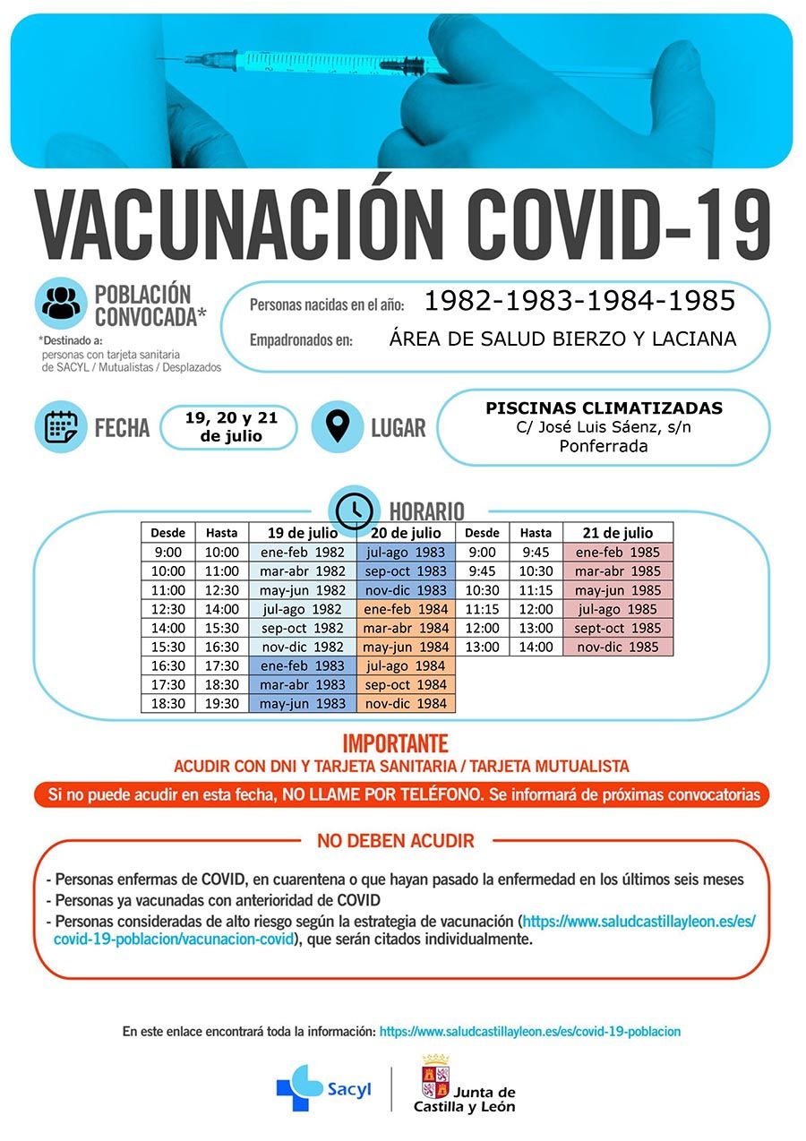 El lugar escogido para todos días es el Pabellón Deportivo anexo a las piscinas climatizadas municipales de El Toralín en Ponferrada (calle José Luis Sáenz s/n). Es necesario acudir con la tarjeta sanitaria, indistintamente Sacyl o cualquier mutua privada, y con un documento acreditativo.