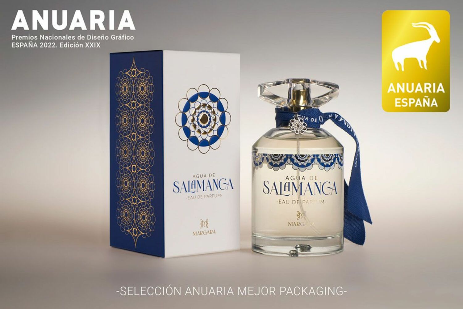 Con una tipografía lujosa inspirada en el Art Decó clásico, el diseño se completa con detalles dorados que recuerdan la riqueza patrimonial de la ciudad y el color de la piedra de Villamayor en los atardeceres. Agua de Salamanca, creada por la perfumista Paloma Martín Oviedo, es la primera iniciativa de Margara, una nueva empresa ligada al patrimonio cultural que busca desarrollar líneas de productos específicos para museos y tiendas seleccionadas.