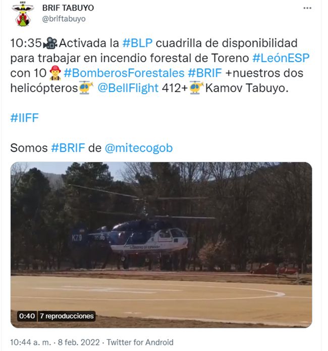 Foto: @briftabuyoMedios, por ahora, terrestres sofocan un incendio en Villar de las Traviesas, perteneciente al municipio de Toreno. El incendio comenzaba a primera hora de este martes, sobre las 7:11 horas, y según fuentes cercanas a las que ha tenido acceso InfoBierzo, en el lugar trabajan la ELIF Cueto y ELIF de Villadeciervos, un agente medioambiental y un buldócer. Por el aire trabajando 4 helicópteros: 2 de Tabuyo, Lima 3 y Zulu 1.