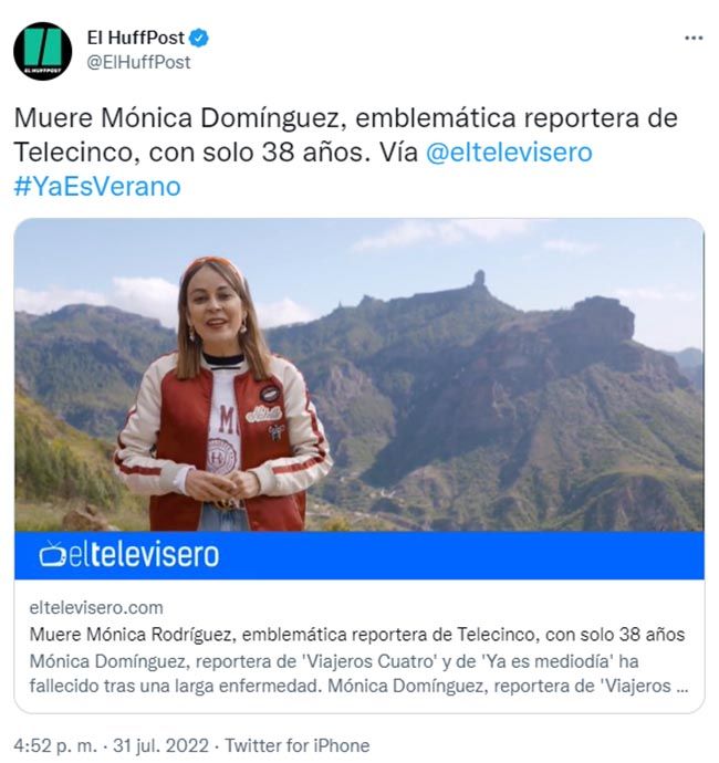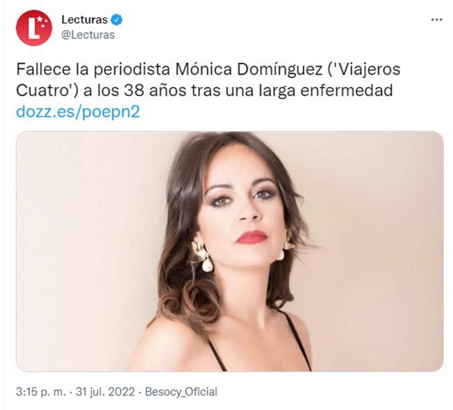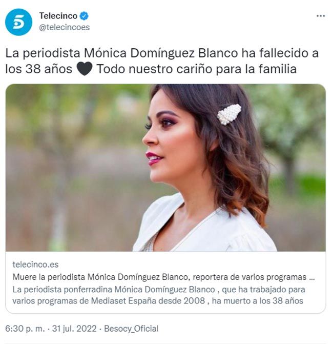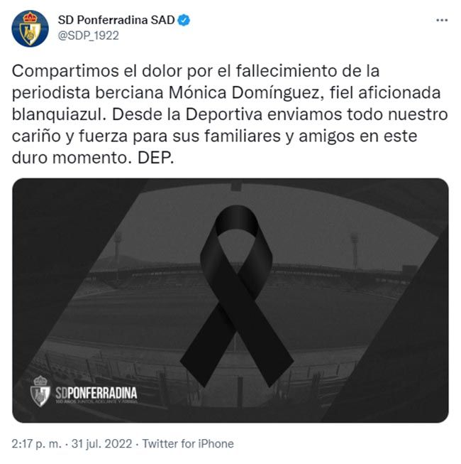 Así, desde el Ayuntamiento de Ponferrada y grupos políticos, la Ponferradina y el Clínica Ponferrada SDP, pasando por innumerables vecinos bercianos, hasta periodistas como Carmen Chaparro, personalidades como Sylvia Pantoja y medios de comunicación como su 'casa' Mediaset y el programa 'Viajeros Cuatro' y otros muchos, han querido recordar a Mónica y dedicarle unas palabras.