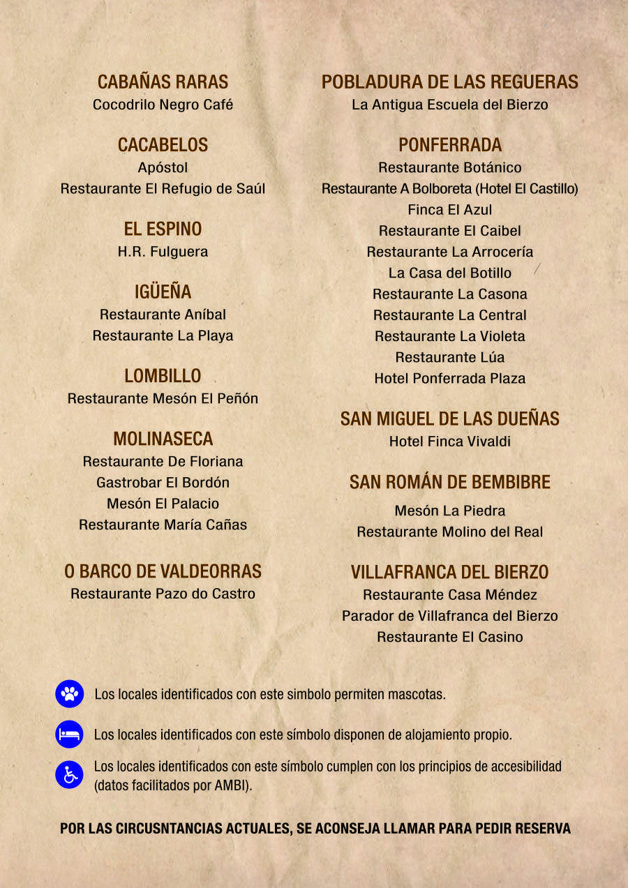 En esta edición participan 30 restaurantes de distintos puntos de la comarca, lo que ha supuesto una reducción de siete menos respecto al año pasado. Algo comprensible teniendo en cuenta la incertidumbre que provoca la crisis sanitaria. En cualquier caso, sí esperan desde el Consejo Comarcal, el patronato de Turismo y los propios establecimientos, que la celebración de las Jornadas revitalice la hostelería berciana en un año complicado. "Estamos satisfechos de comprobar la apuesta del sector por estas Jornadas", insistió Gerardo Álvarez Courel.