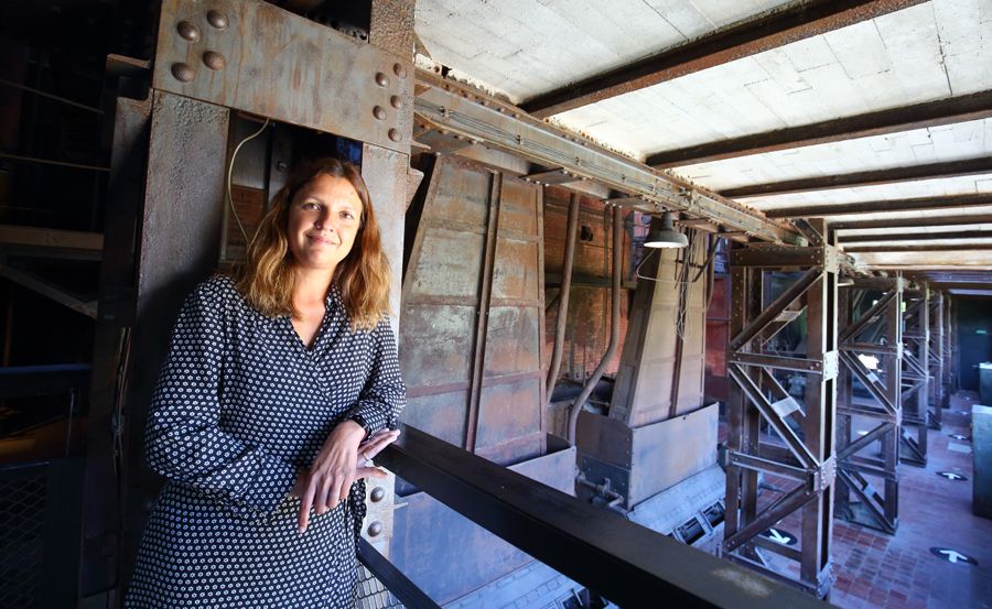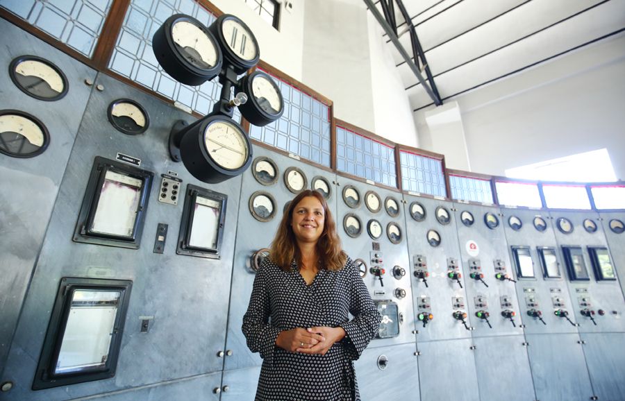 La directora del Museo, Yasodhara López, en el interior de la vieja nave de calderas de la antigua central de MSP, hoy Museo de la Energía