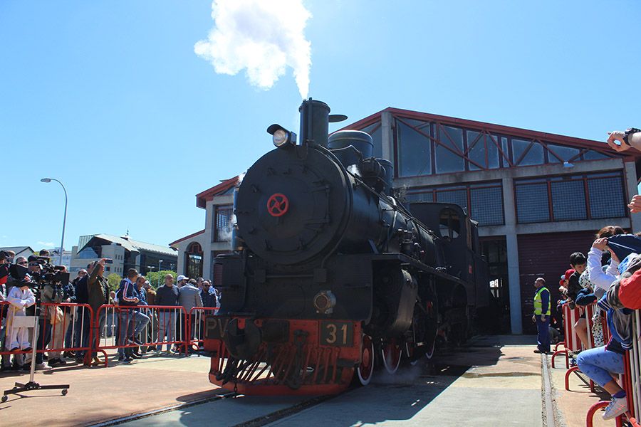 El pasado sábado 18 de mayo se cumplieron ocho años desde el ingreso de la locomotora PV31 en el Museo del Ferrocarril de Ponferrada y para conmemorarlo -y también con motivo del Día de lo Museos-, la máquina de vapor de la MSP (Minero Siderúrgica de Ponferrada) ha vuelto a ponerse en marcha este domingo, con un encendido simbólico. El 'gigante de hierro' estará en marcha, escupiendo humo con su característico sonido, hasta las 13.30 horas, recorriendo los metros que separa el Museo del Ferrocarril de la plaza contigua.