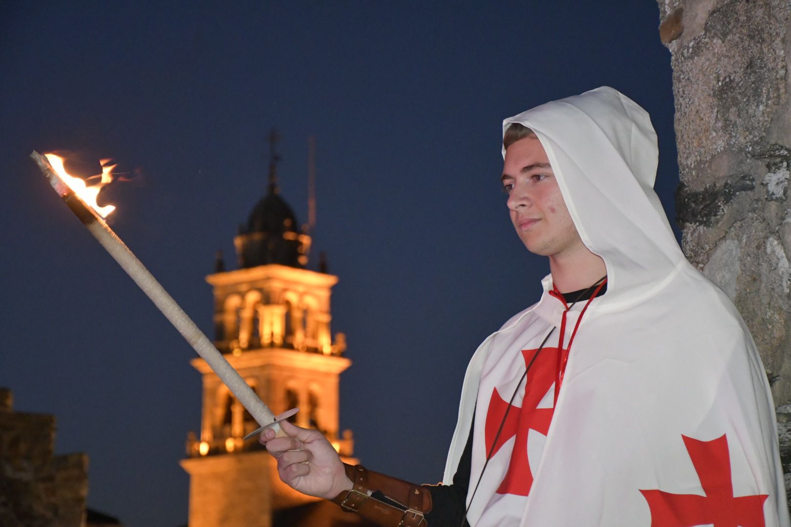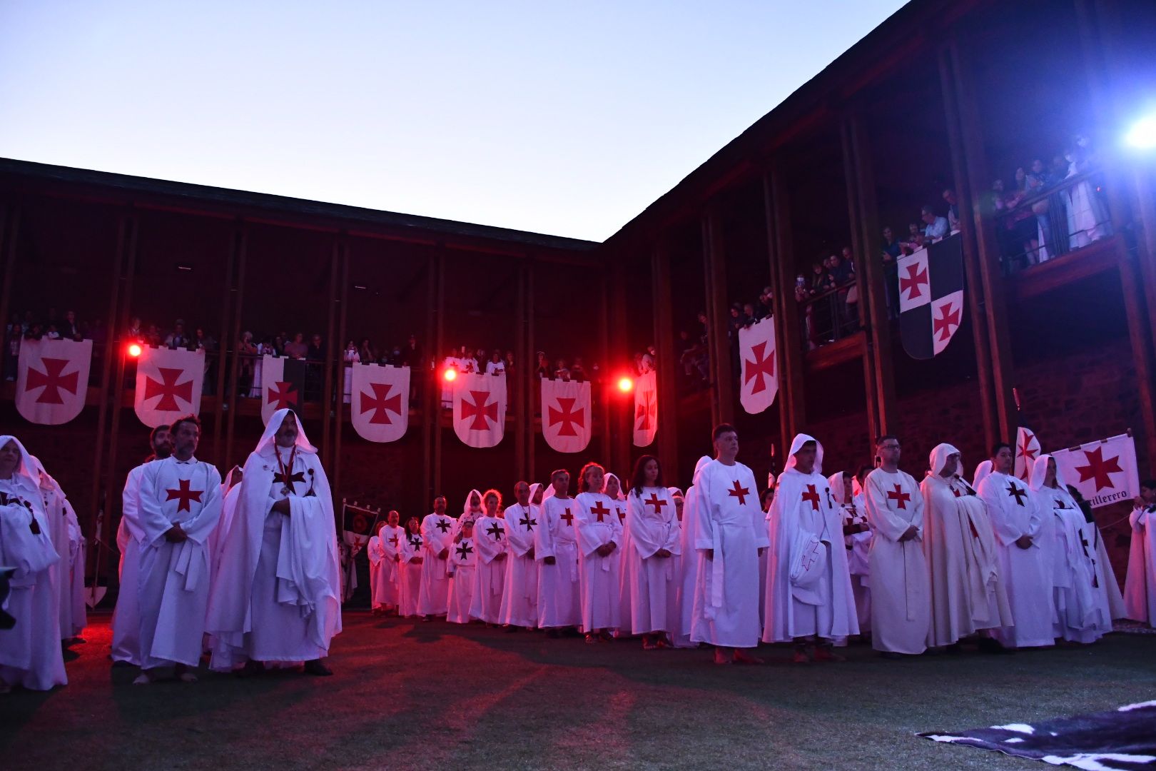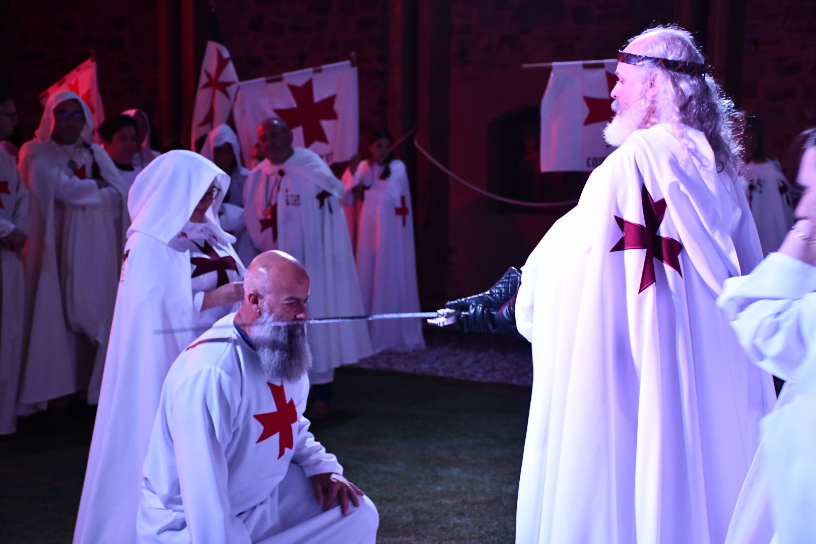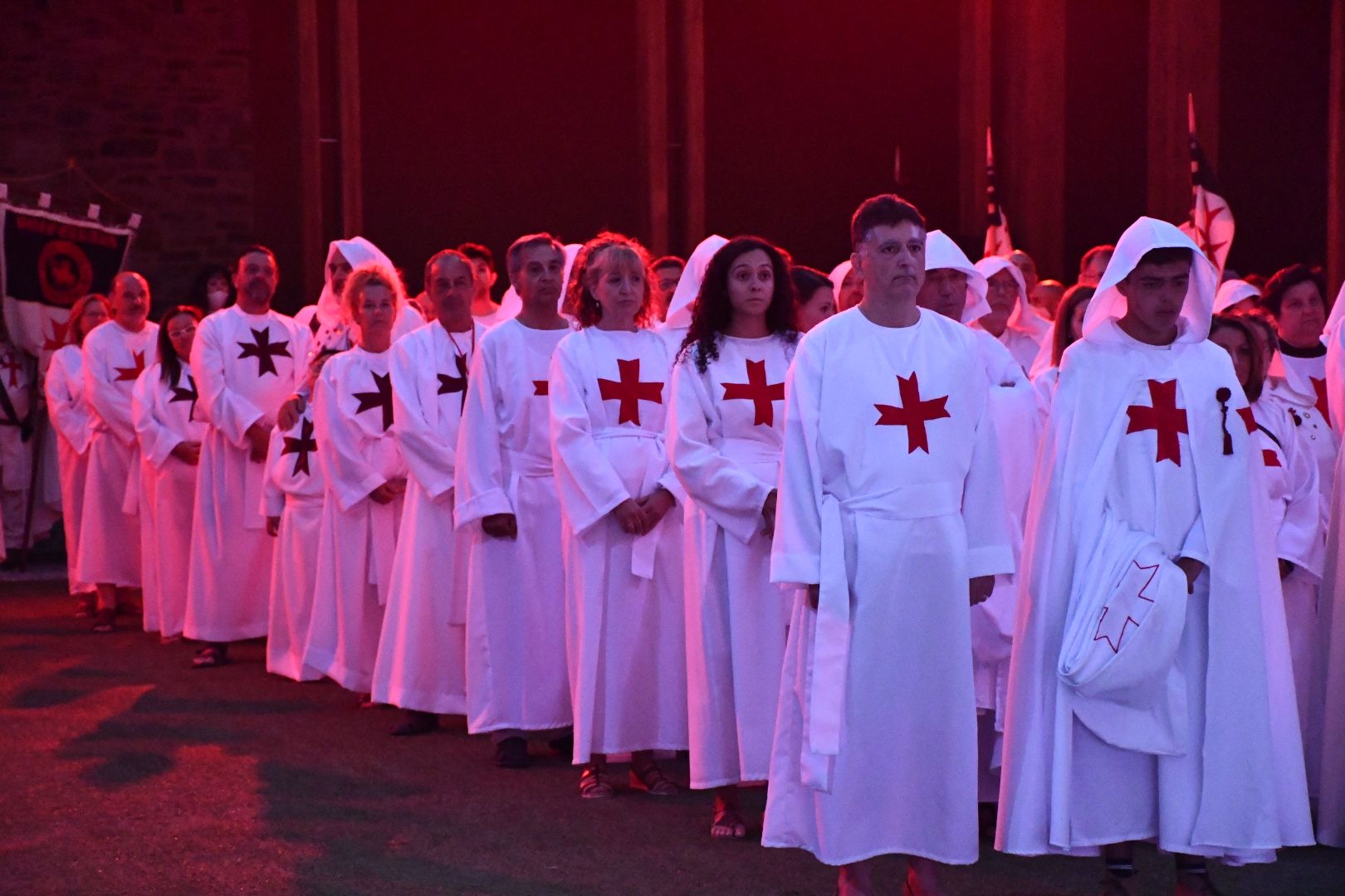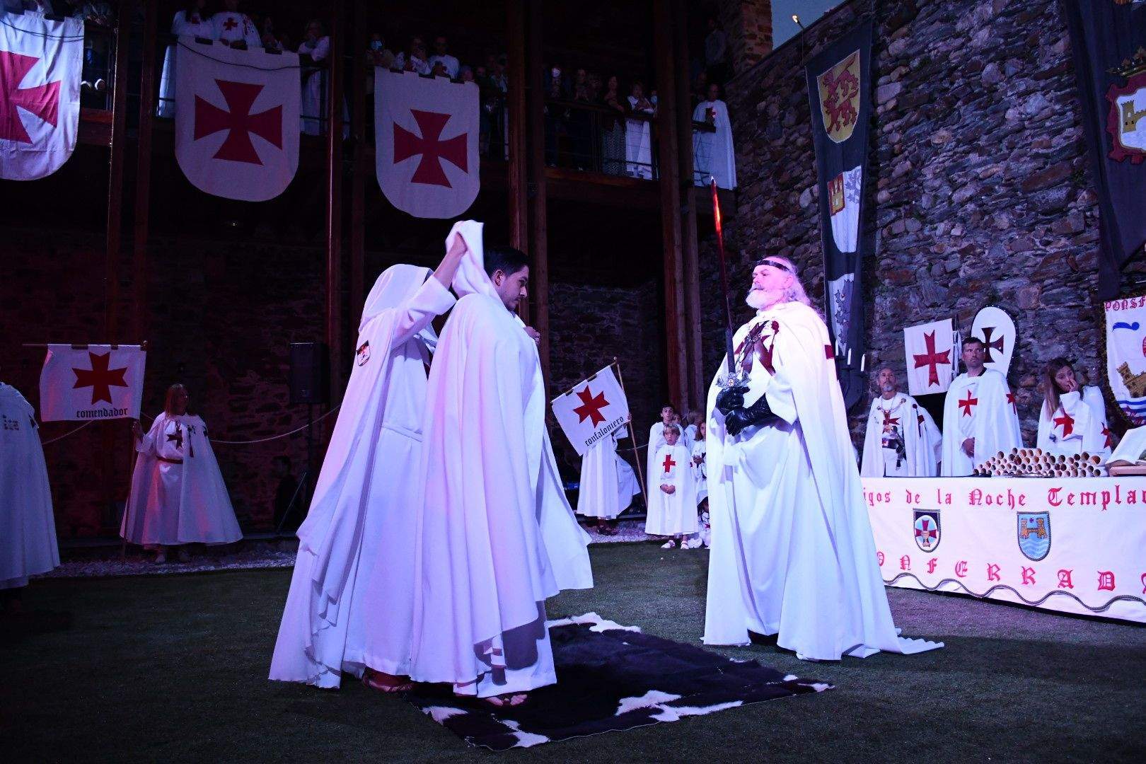 Los Templarios han vuelto a 'conquistar' Ponferrada después de dos años sin Noche Templaria. El Patio de Armas del Castillo de Ponferrada ha congregado a un total de 68 nuevos caballeros de la Orden del Temple, quienes han jurado lealtad al Temple y que junto a su padrino de ordenación, se han puesto la capa tras el juramento realizado por Guido de Garda.