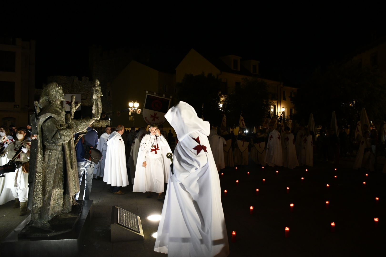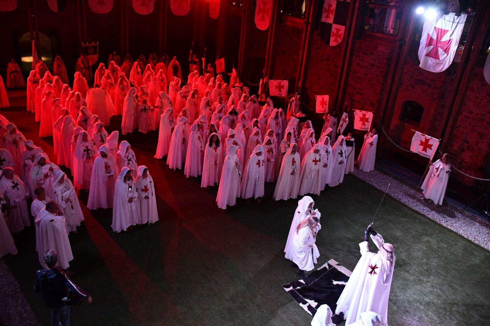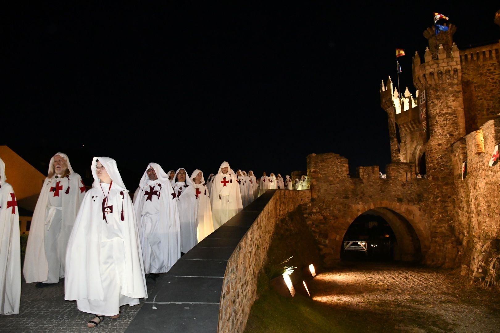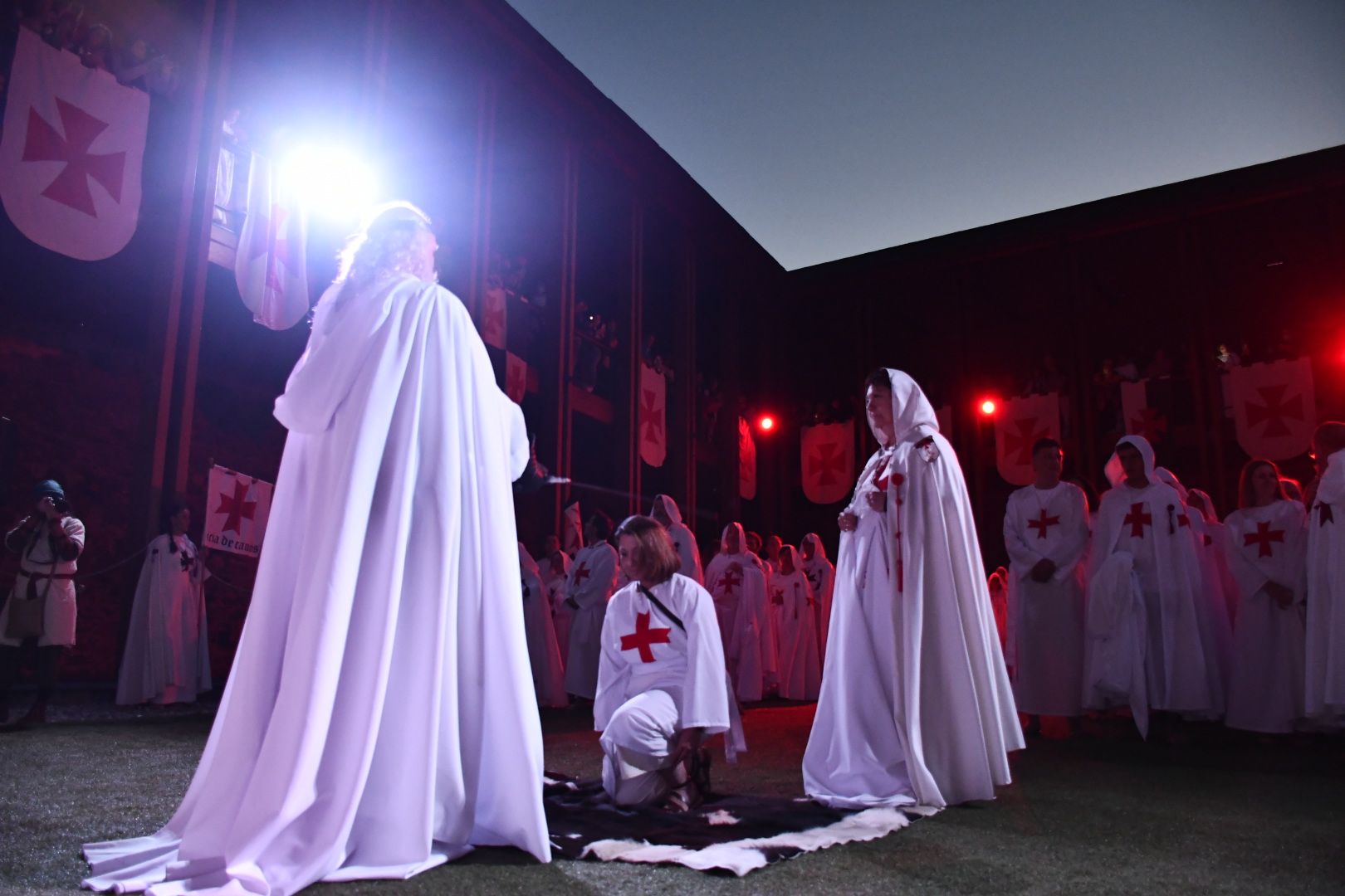 Los Templarios han vuelto a 'conquistar' Ponferrada después de dos años sin Noche Templaria. El Patio de Armas del Castillo de Ponferrada ha congregado a un total de 68 nuevos caballeros de la Orden del Temple, quienes han jurado lealtad al Temple y que junto a su padrino de ordenación, se han puesto la capa tras el juramento realizado por Guido de Garda.