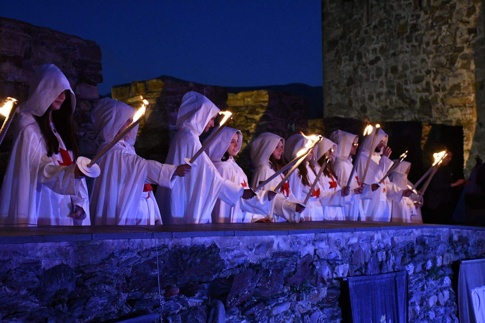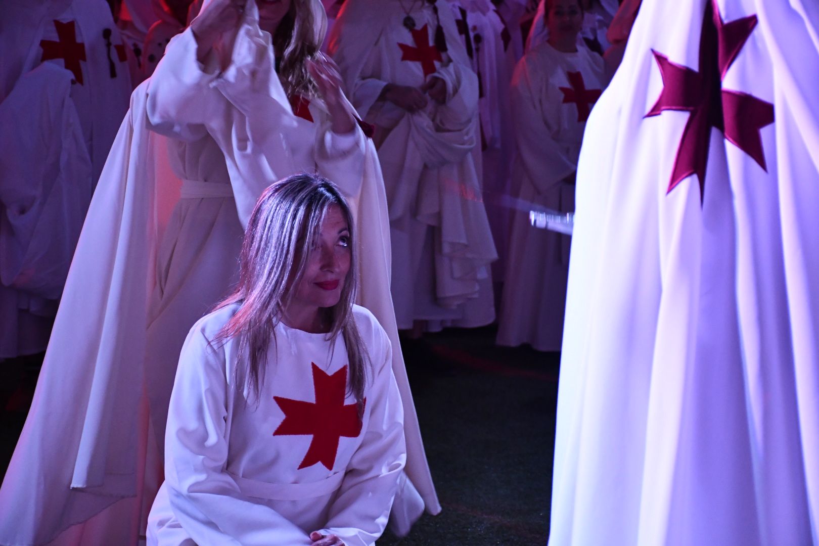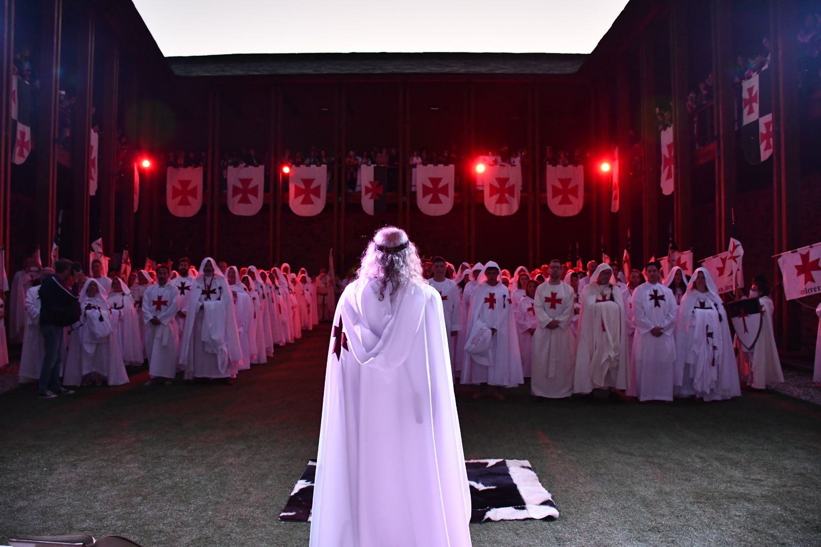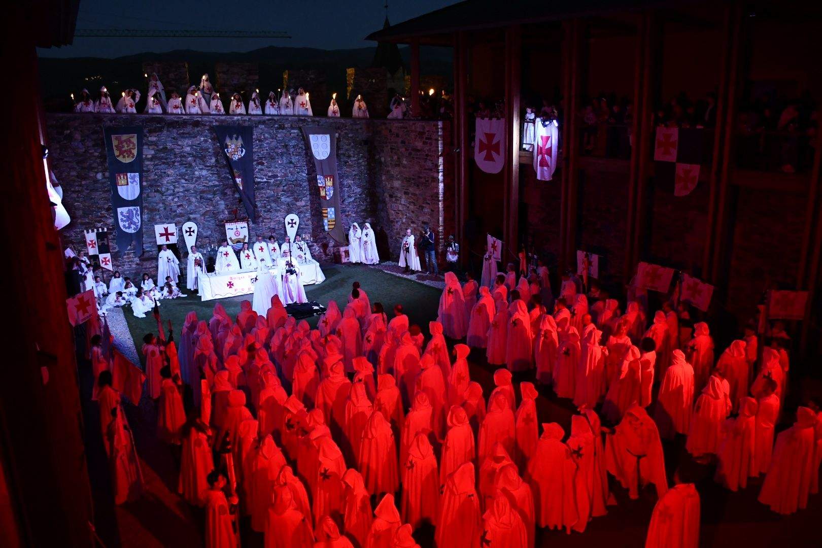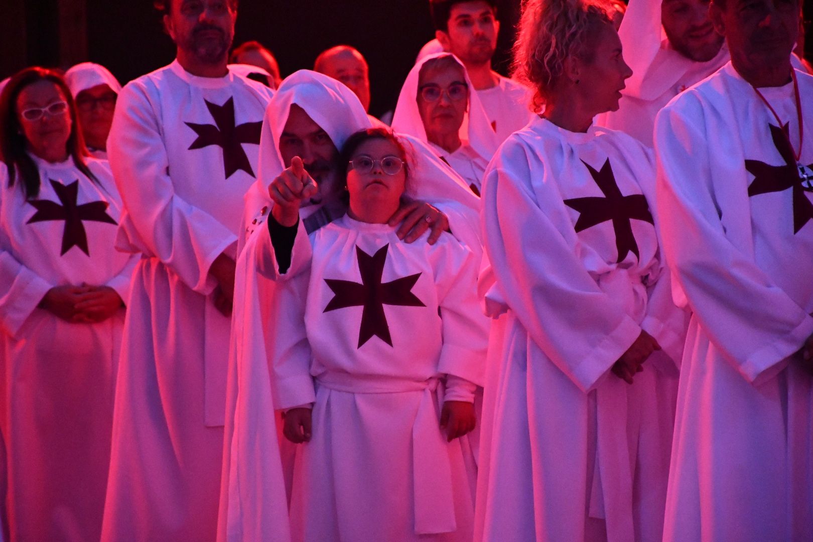 Los Templarios han vuelto a 'conquistar' Ponferrada después de dos años sin Noche Templaria. El Patio de Armas del Castillo de Ponferrada ha congregado a un total de 68 nuevos caballeros de la Orden del Temple, quienes han jurado lealtad al Temple y que junto a su padrino de ordenación, se han puesto la capa tras el juramento realizado por Guido de Garda.